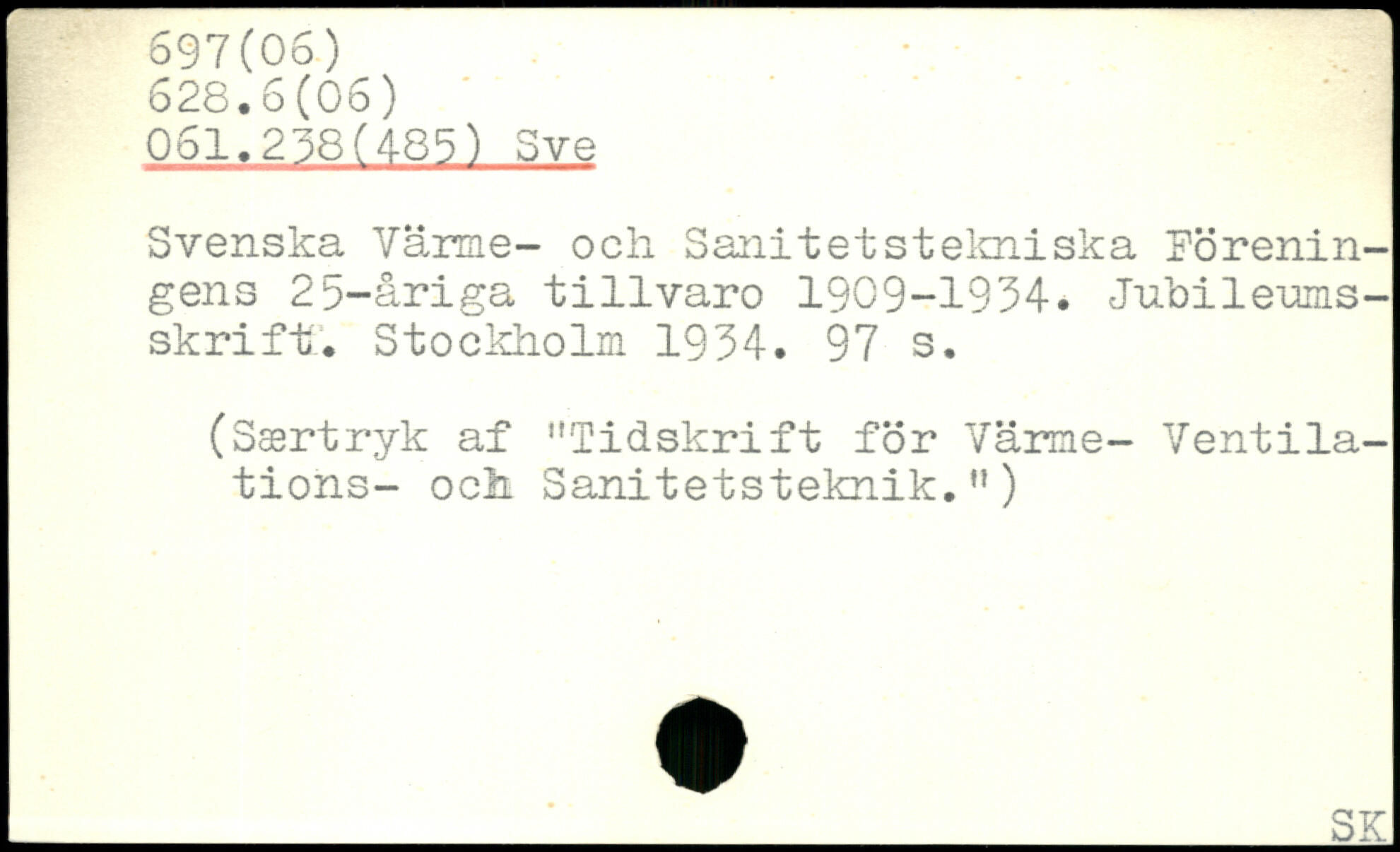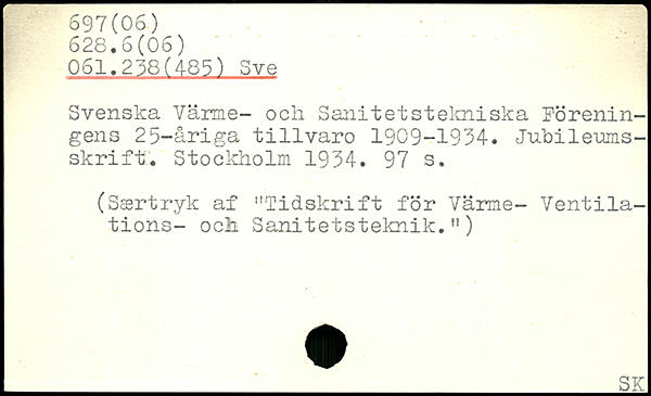 Svenska Värme- oeh Sanitetstekniska Poreningens 25-åriga tillvaro 1909-1934. Jubileumsskrift