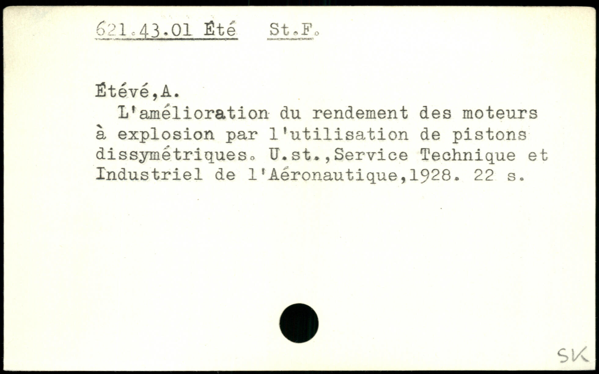 L'amélioration du rendement des moteurs à explosion par l'utilisation de pistons dissymétriques0 ü.st.,Service Technique et Industriel de l'Aéronautique,1928.