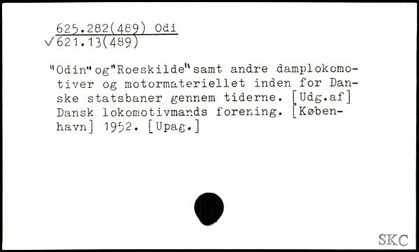 '’(^din1. og.Roeskildeu samt andre damplokomotiver og motormateriellet inden for Danske statsbaner gennem tiderne. ^Udg.af] Dansk lokomotivmands forening.
