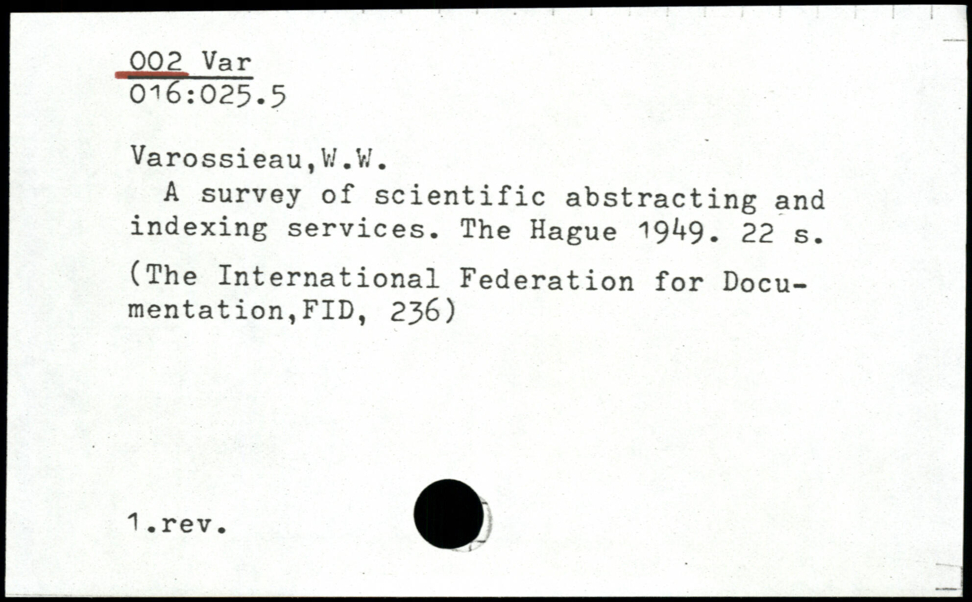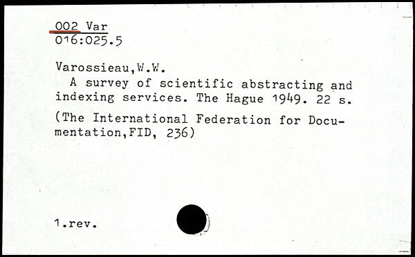 A survey of scientific abstracting and indexing services. The Hague 19.+9.