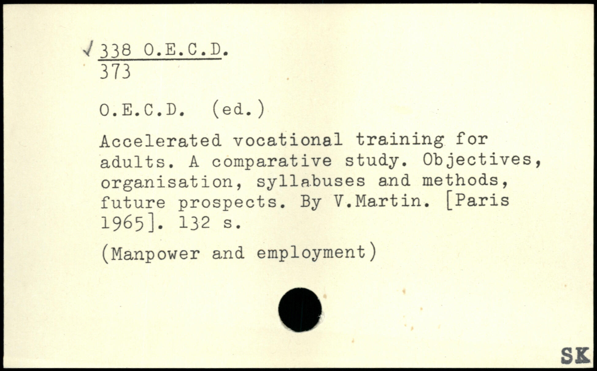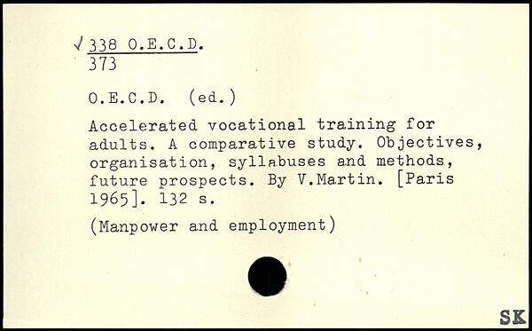 Accelerated vocational training for adults. A comparative study. Objectives, organisation, syllabuses and methods, future prospects. By V.Martin.