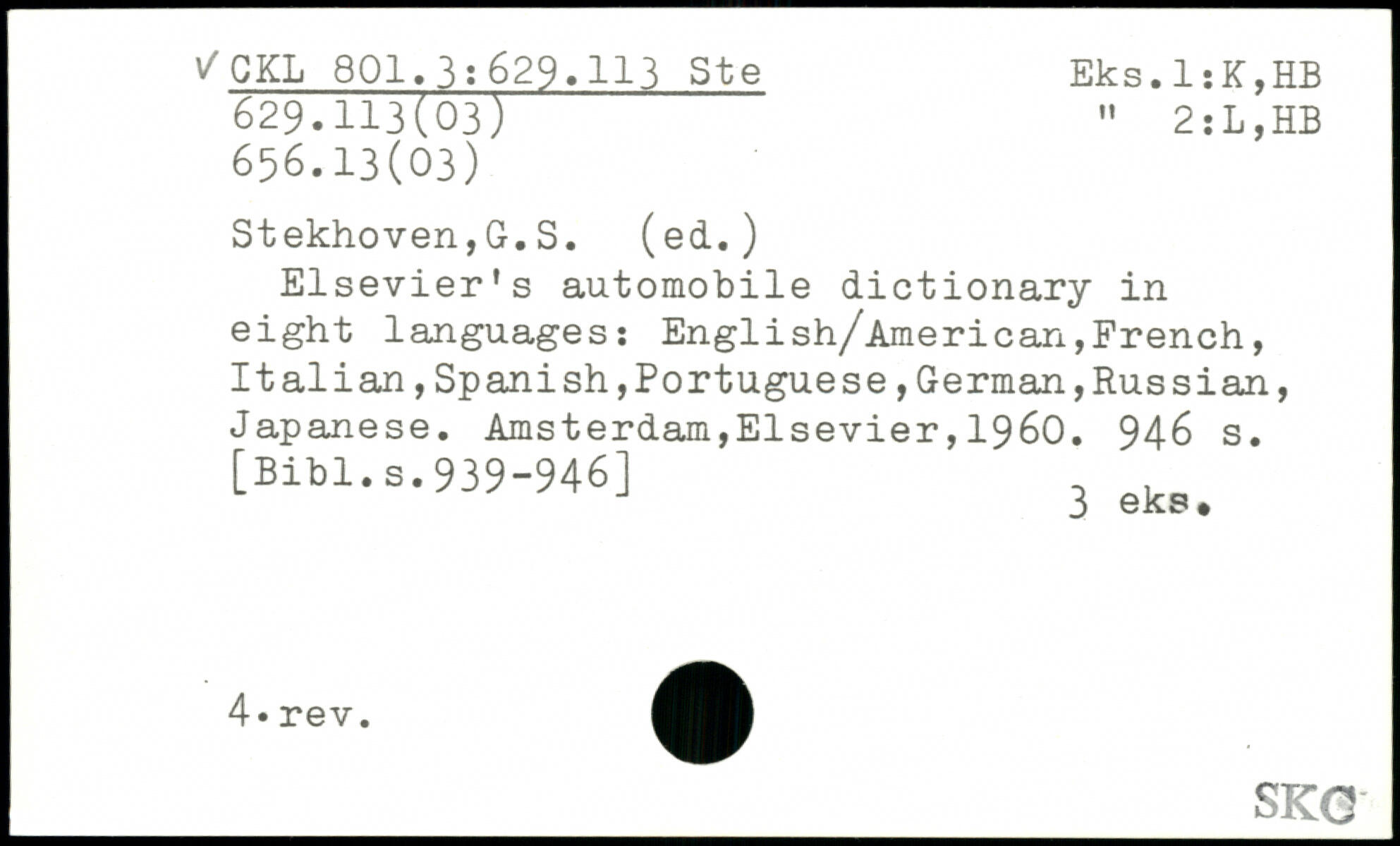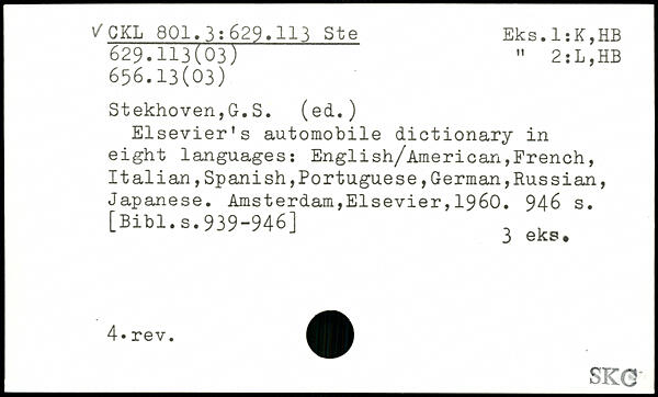 Elsevier's automobile dictionary in eight languages: English/American,French, Italian,Spanish,Portuguese,German,Russian, Japanese.
