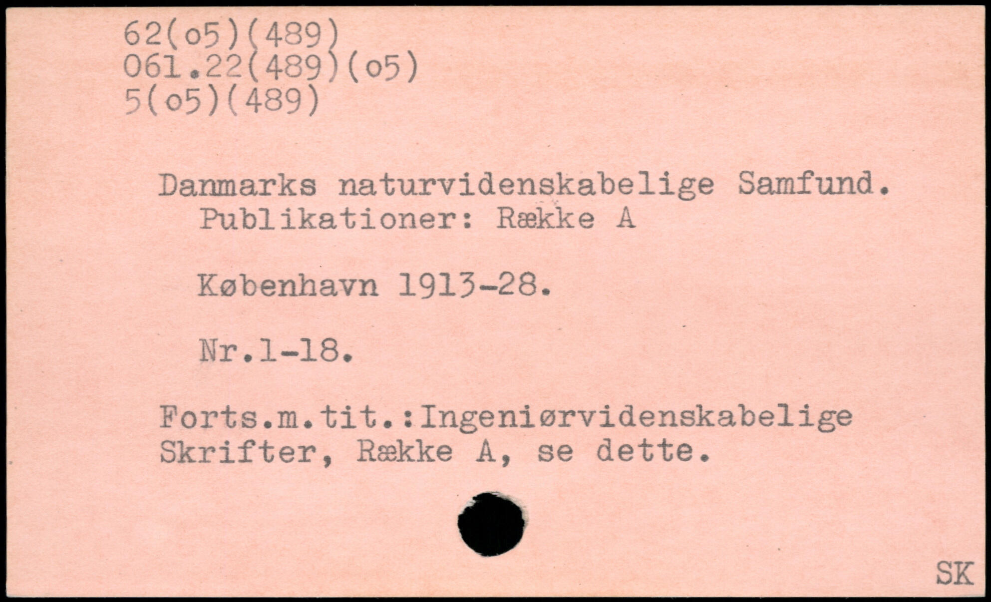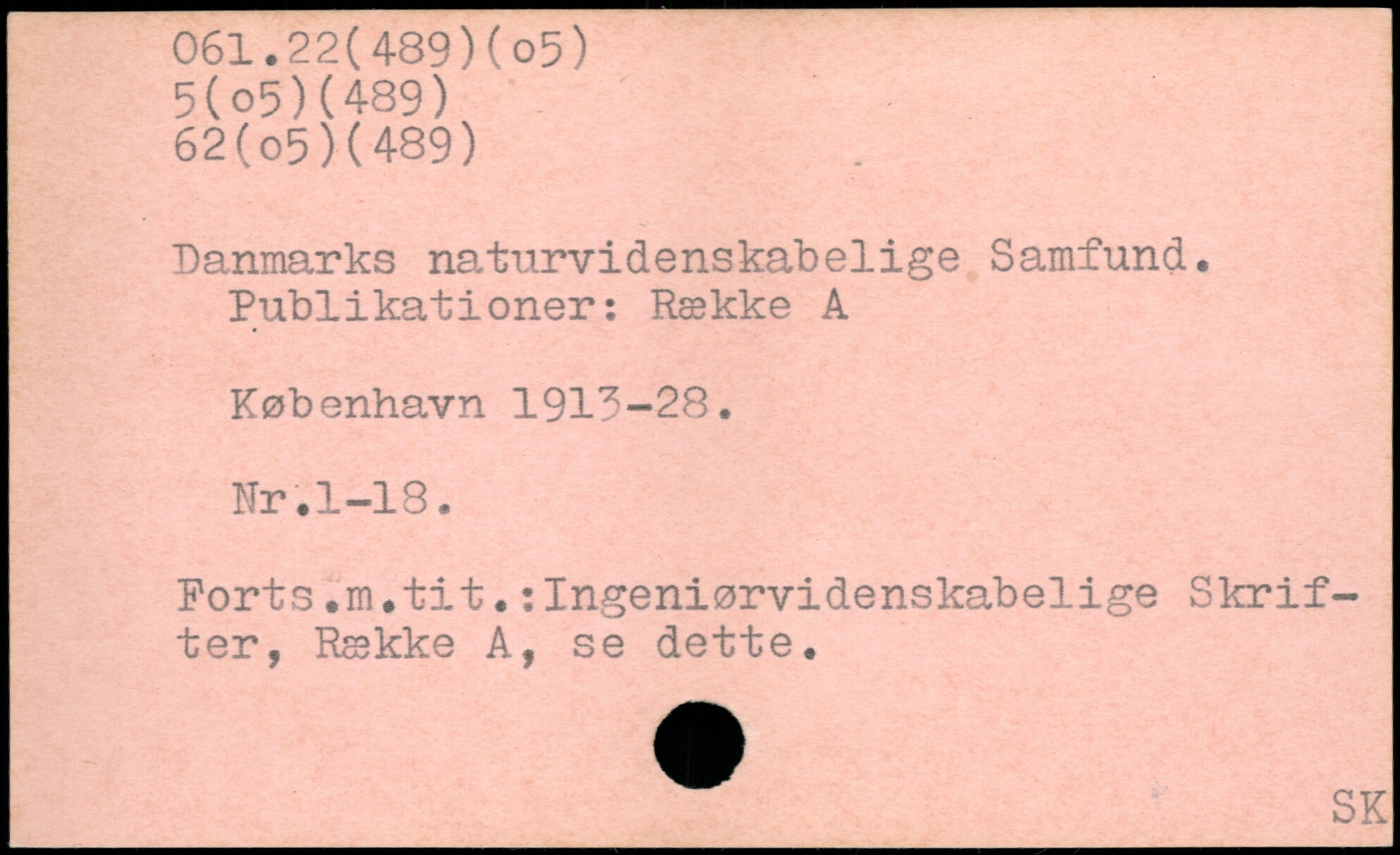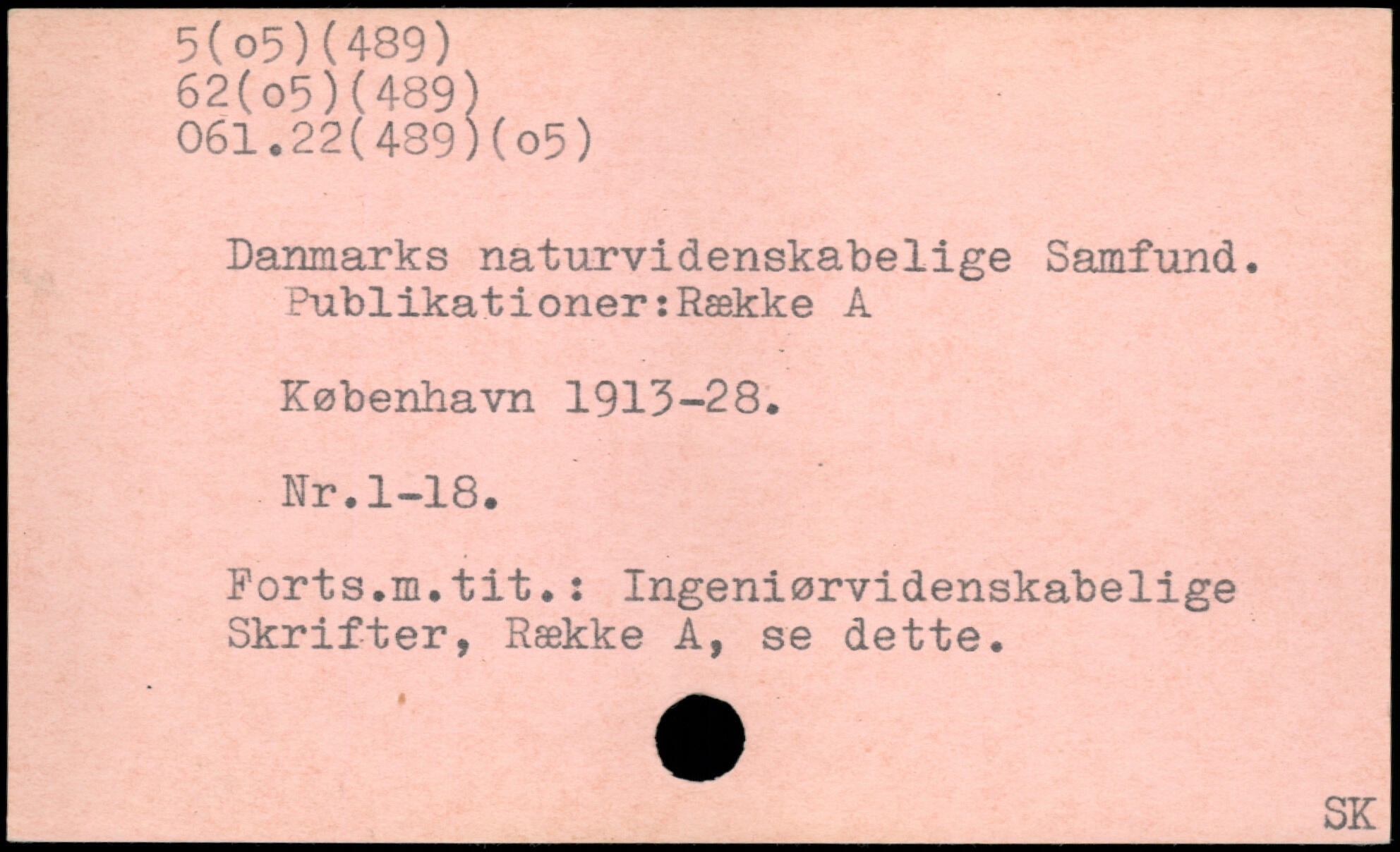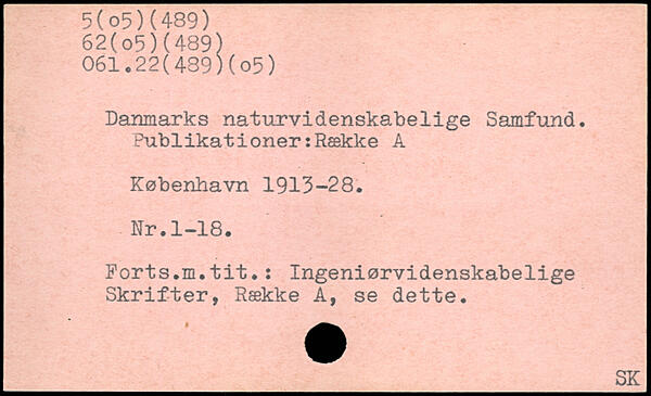 Danmarks naturvidenskabelige Samfund. Publikationer:Række A