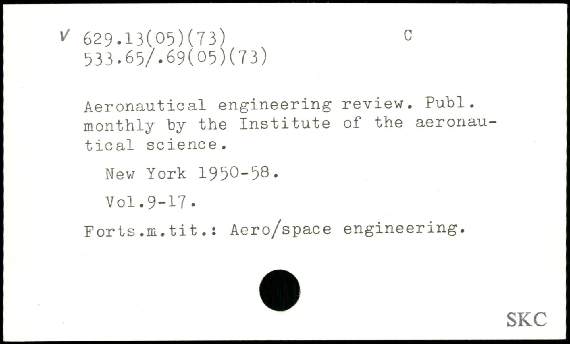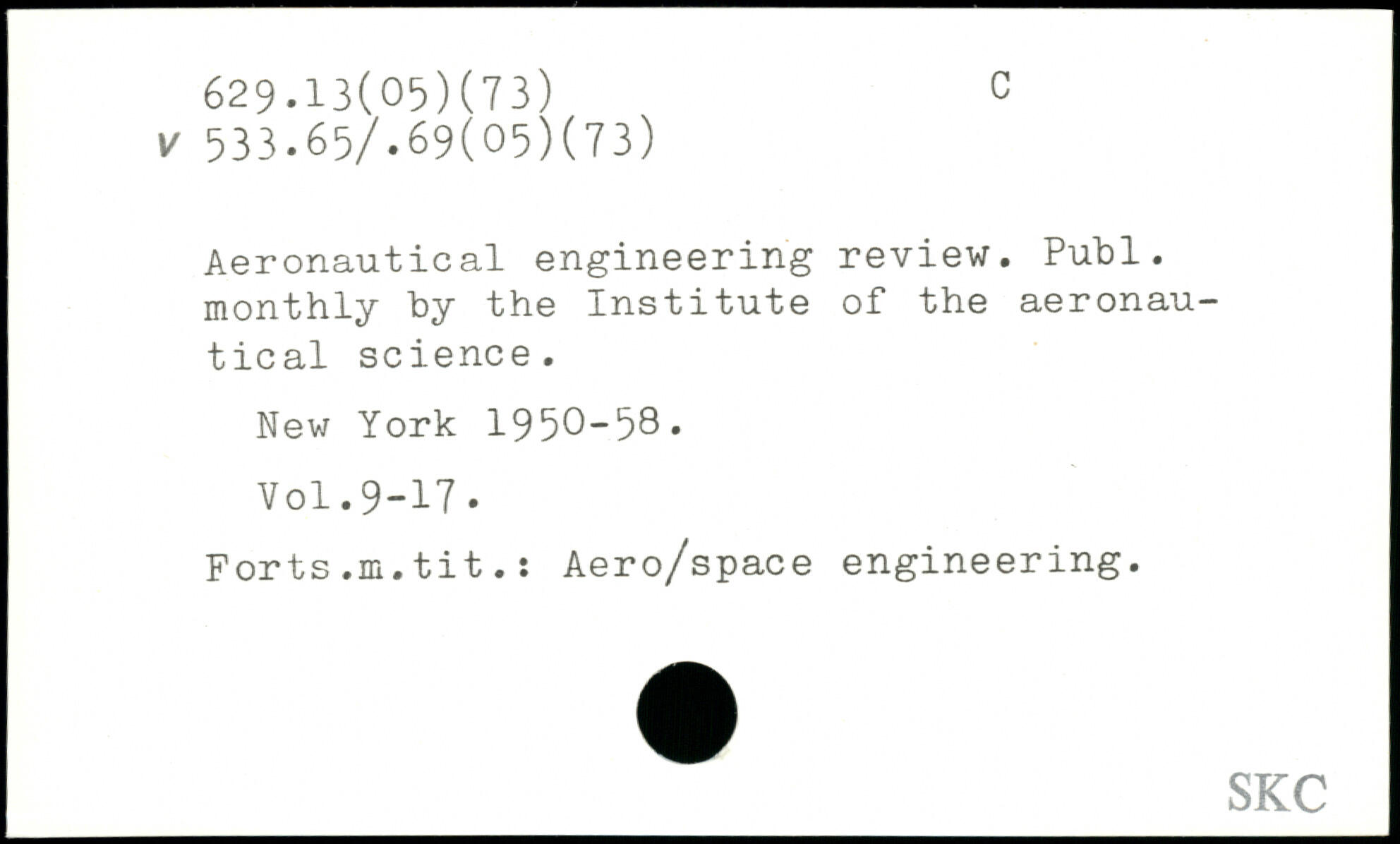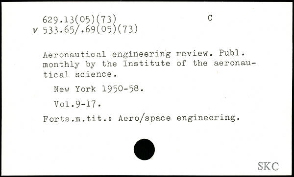 Aeronautical engineering review. Publ. monthly by the Institute of the aeronautical science.