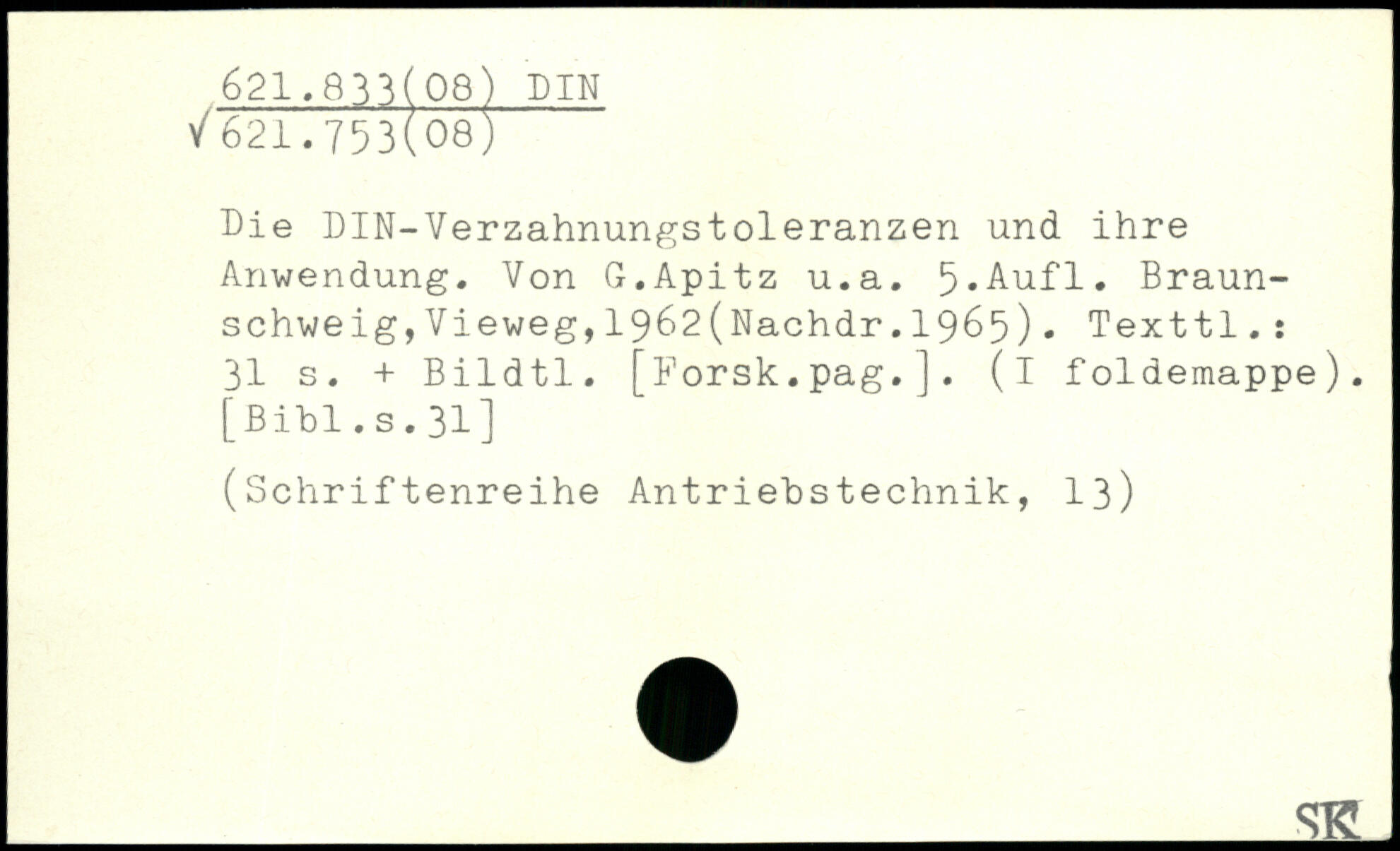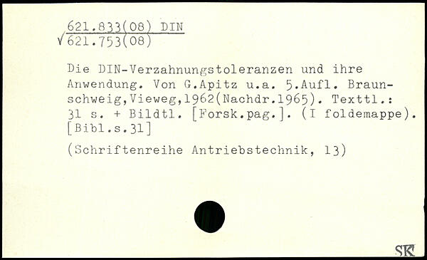 Oie BIN-Verzahnungstoleranzen und ihre Anwendung. Von G.Apitz u.a.