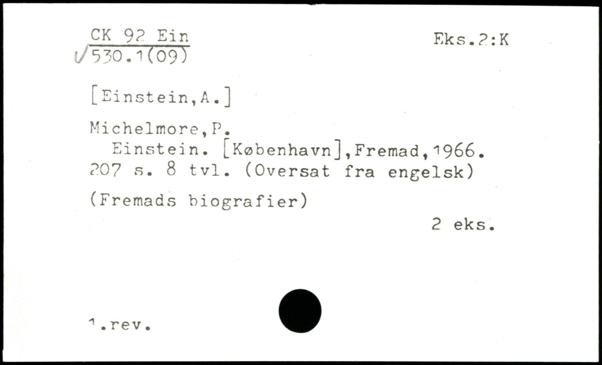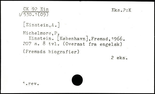 Einstein. [København],Fremad,1966. PO? s. 8 tvl. (Oversat fra engelsk)