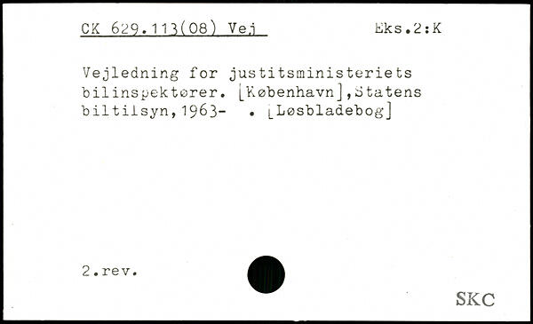 Vejledning for justitsministeriets bilinspektører. [København],8tatens biltilsyn, 1963-. |_ Løsbladebog]