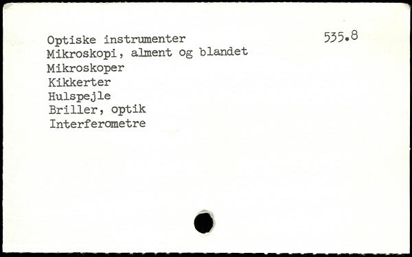 Optiske instrumenter 535,S Mikroskopi, alment og blandet Mikroskoper Kikkerter Hulspejle Briller, optik Interferometre