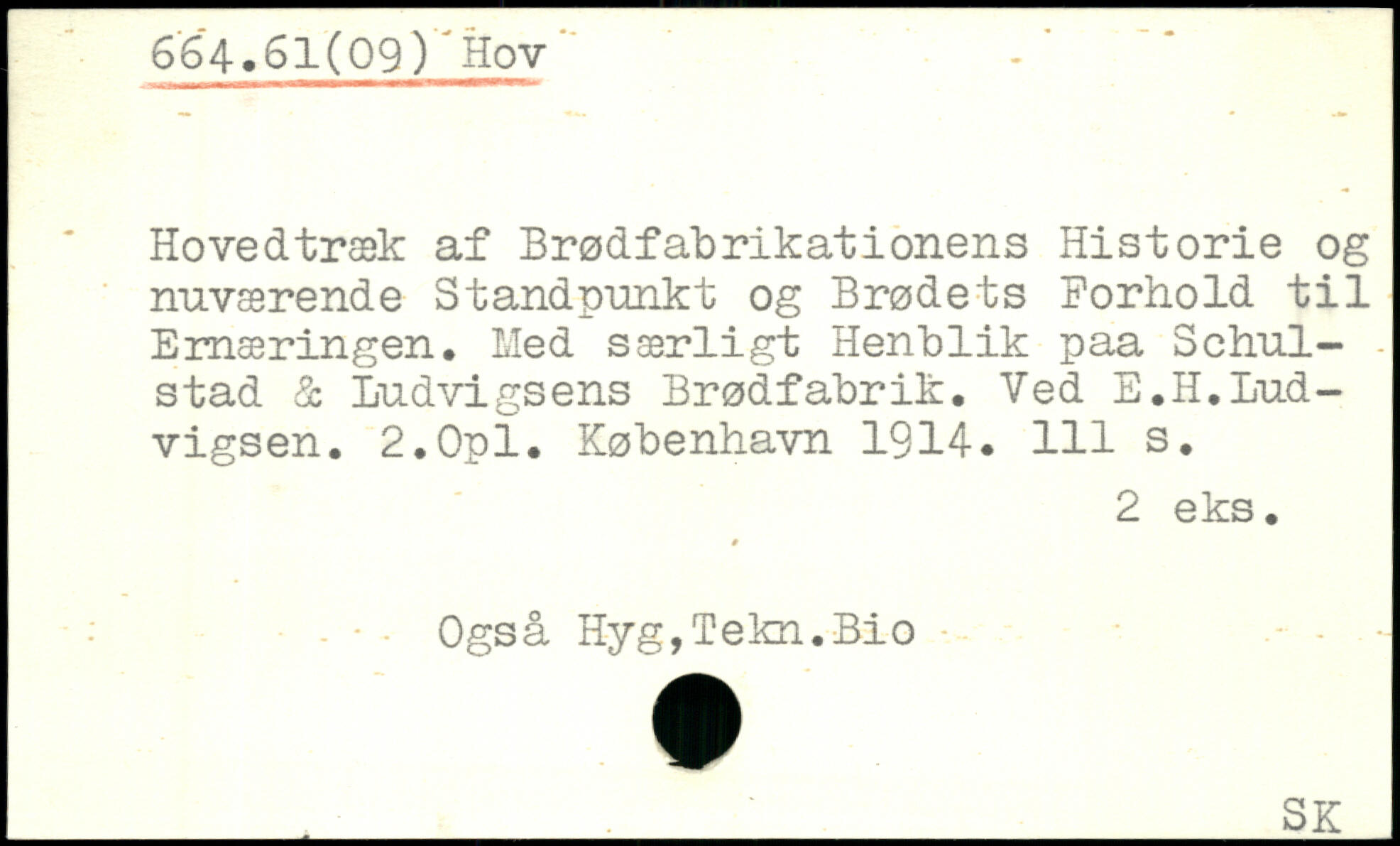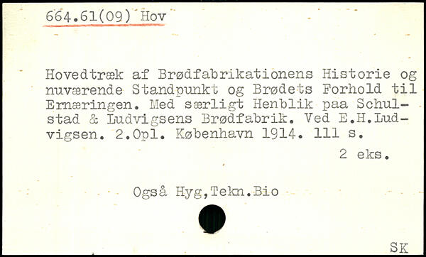 Hovedtræk af Brødfabrikationens Historie og nuværende Standpunkt og Brødets Forhold til Ernæringen. Med særligt Henblik paa Schul-stad 3z Ludvigsens Brødfabrik. Ved E.H.Lud-vigsen. 2.0pl.