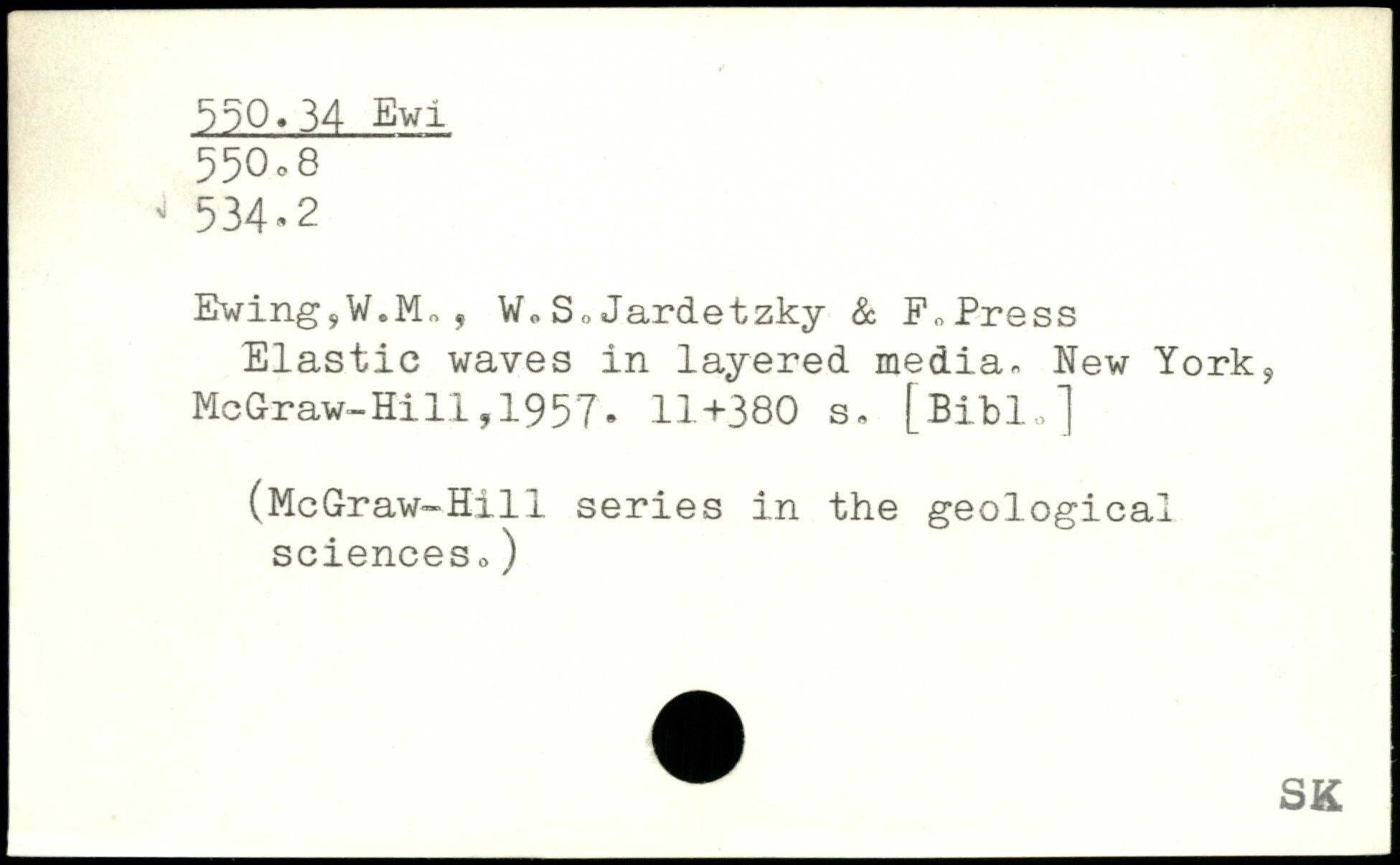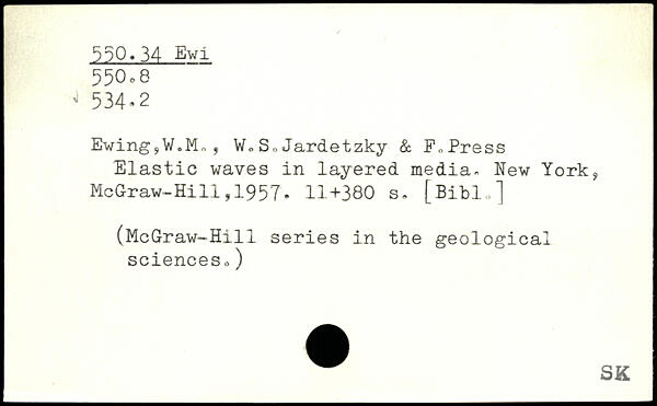 EwingyW.M,, , WoS,Jardetzky & F,Press Elastic waves in layered media-.