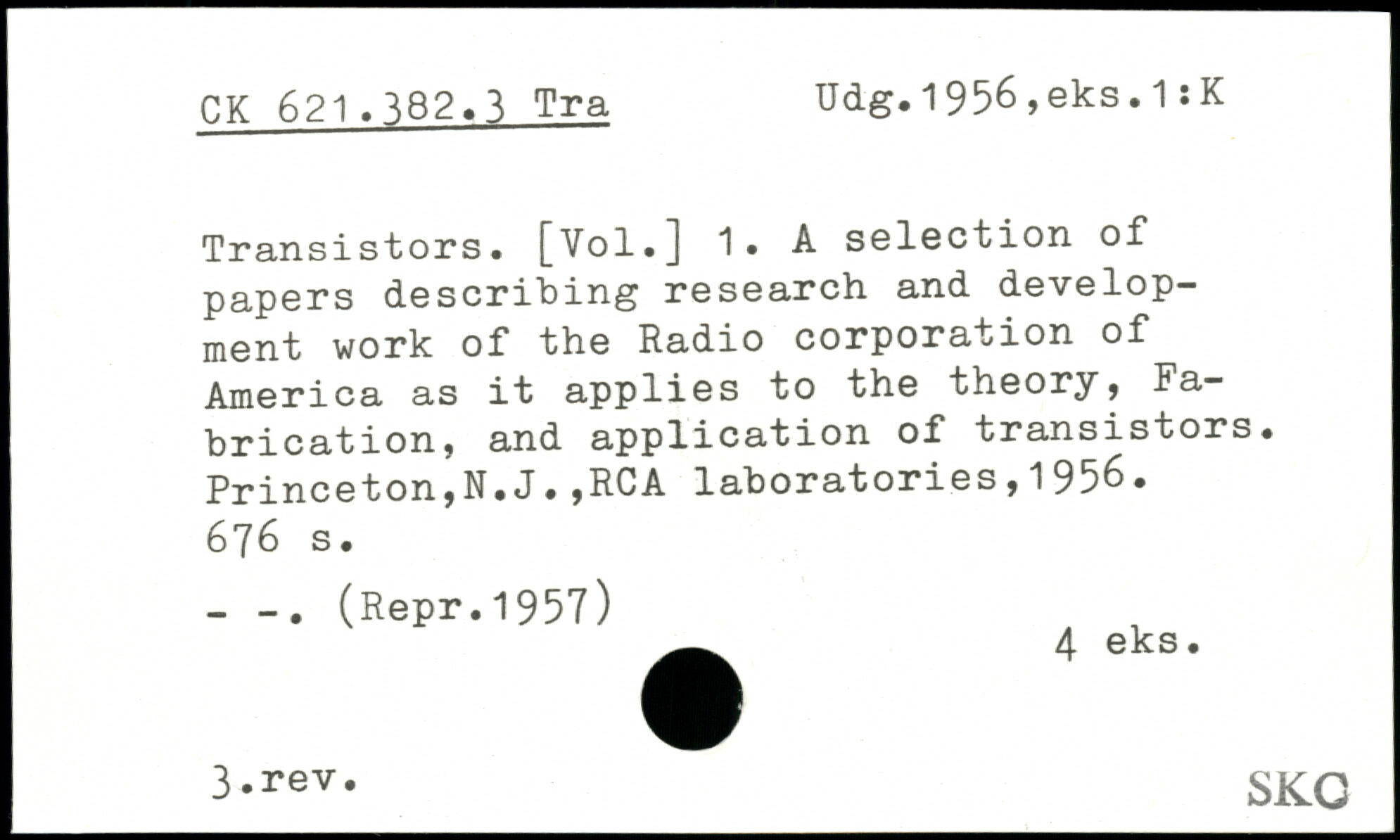 Transistors, [Vol.] 1, A selection of papers describing research and development work of the Radio corporation of America as it applies to the theory, Fabrication, and application of transistors