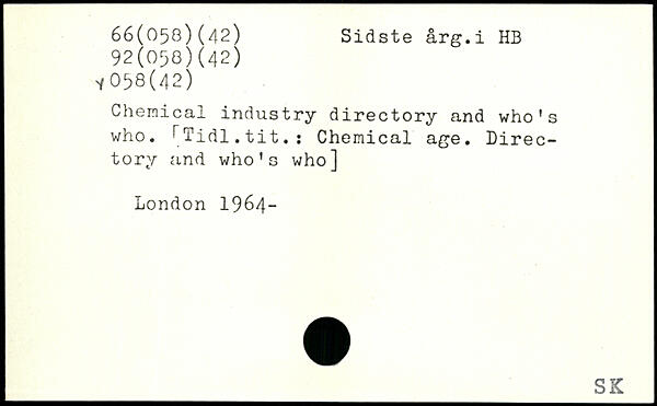 Chemical industry directory and who’s who. ^Tidl.tit.i Chemical age. Directory and who’s who]