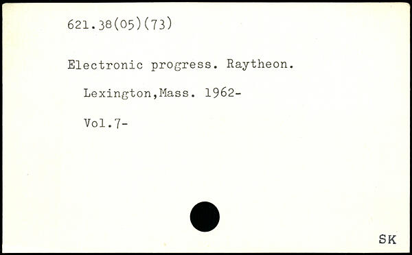Electronic progress. Raytheon. Lexington,Mass. 1962-
