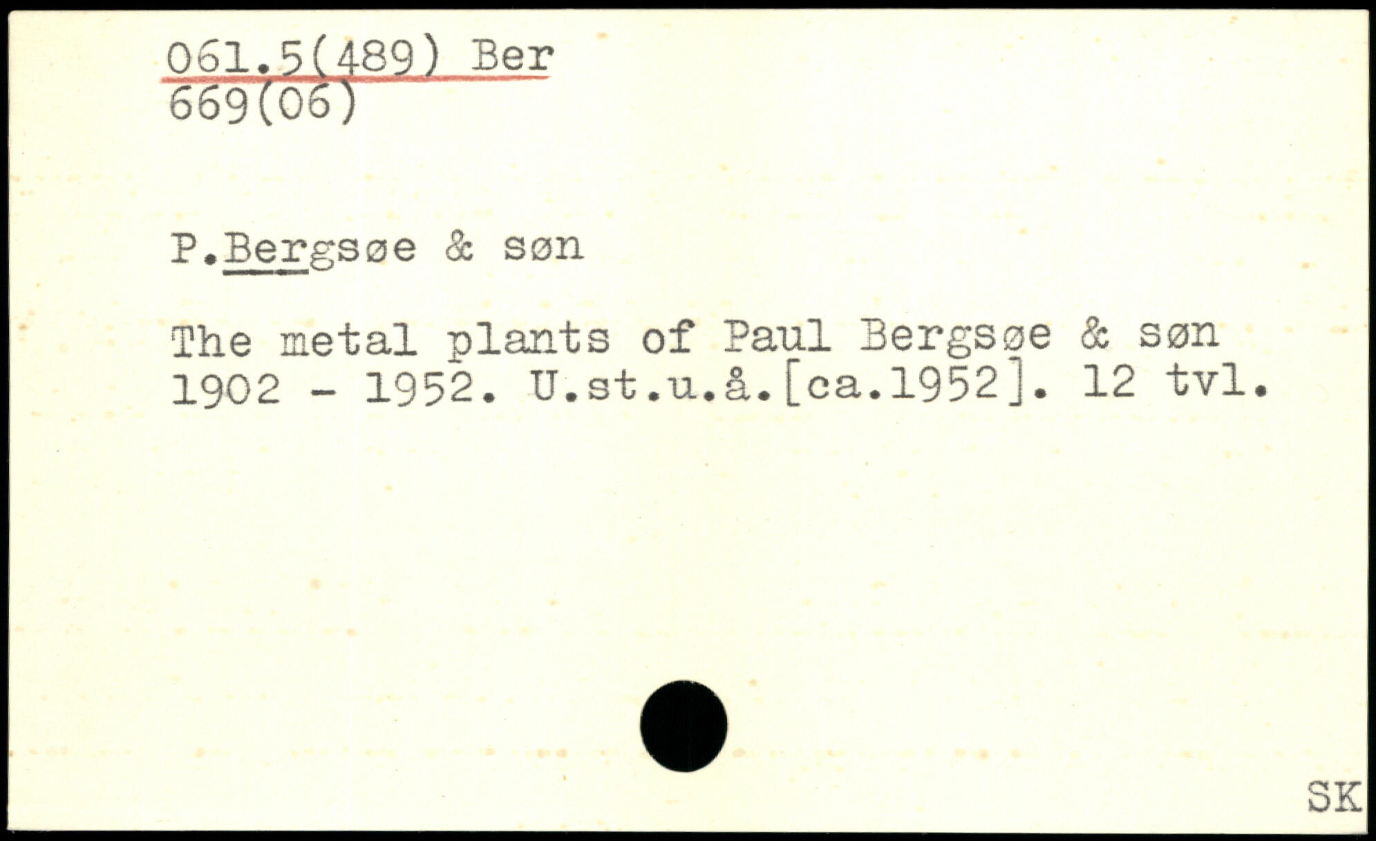 The metal niants of Paul Bergsøe & søn 1902 - 1952. U.st.u.å.[ca.1952]. 12 tvl.