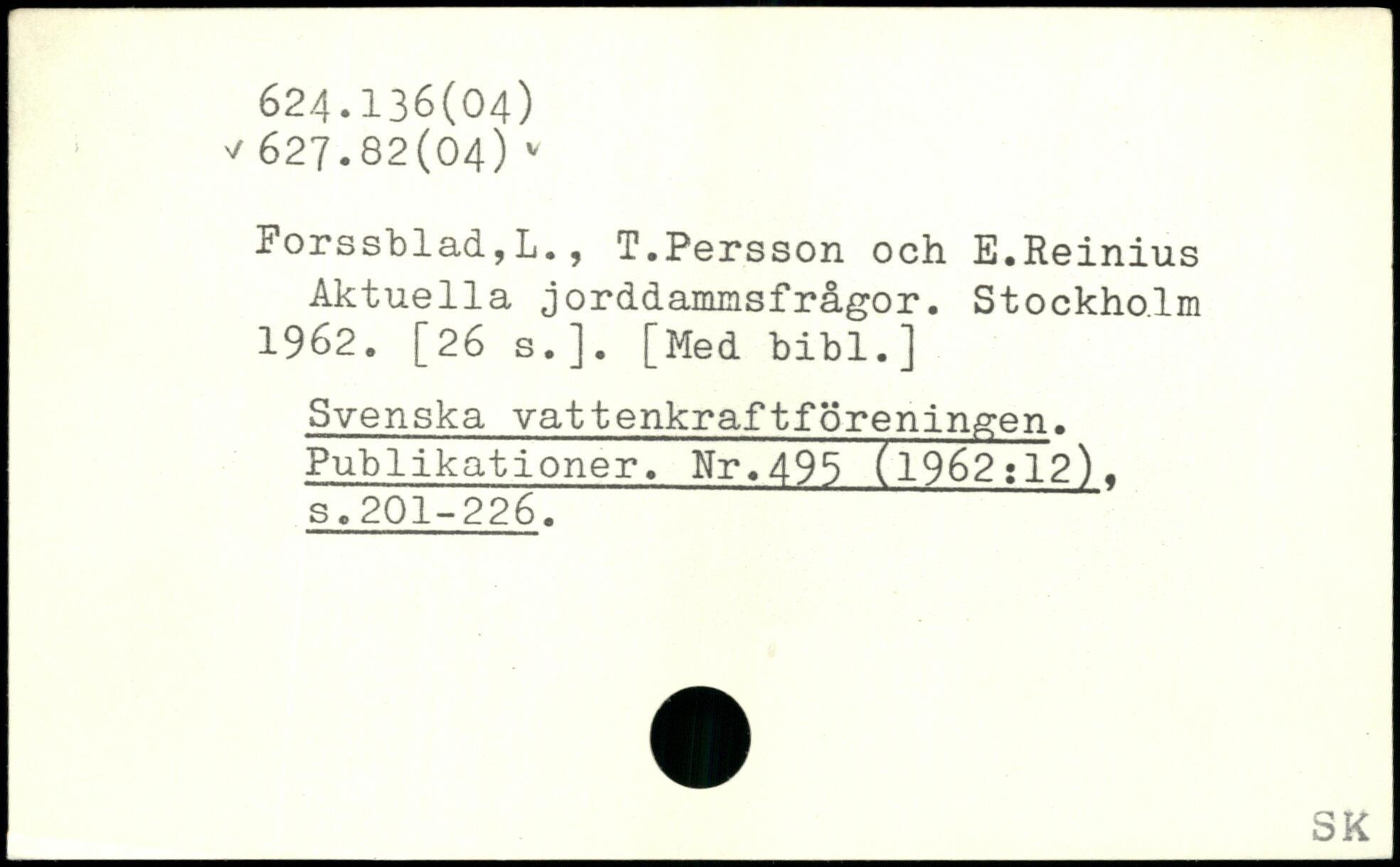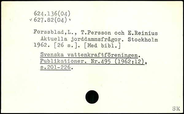 Porssblad,L., T.Persson och E.Reinius Aktuella jorddammsfrågor.