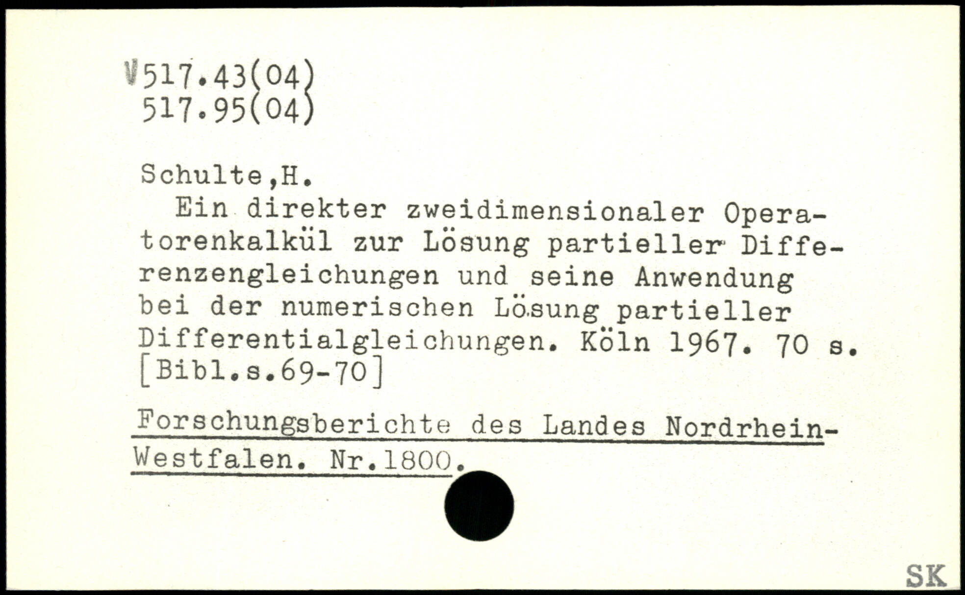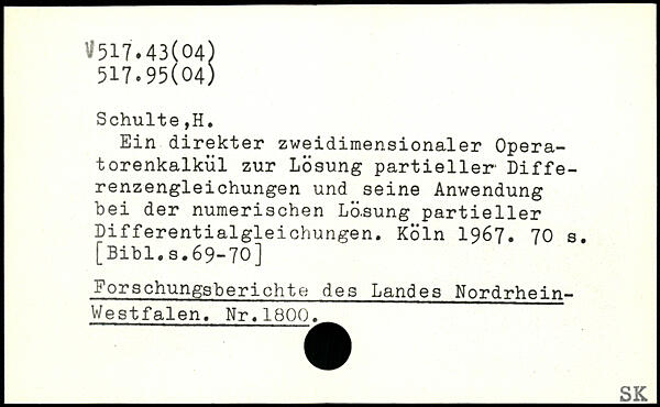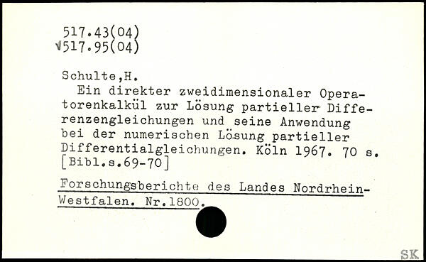 Ein direkter zweidimensionaler Operatorenkalkül zur Losung partieller- Differenzengleichungen und seine Anwendung bei der numerischen Lö.sung partieller Differentialgleichungen.
