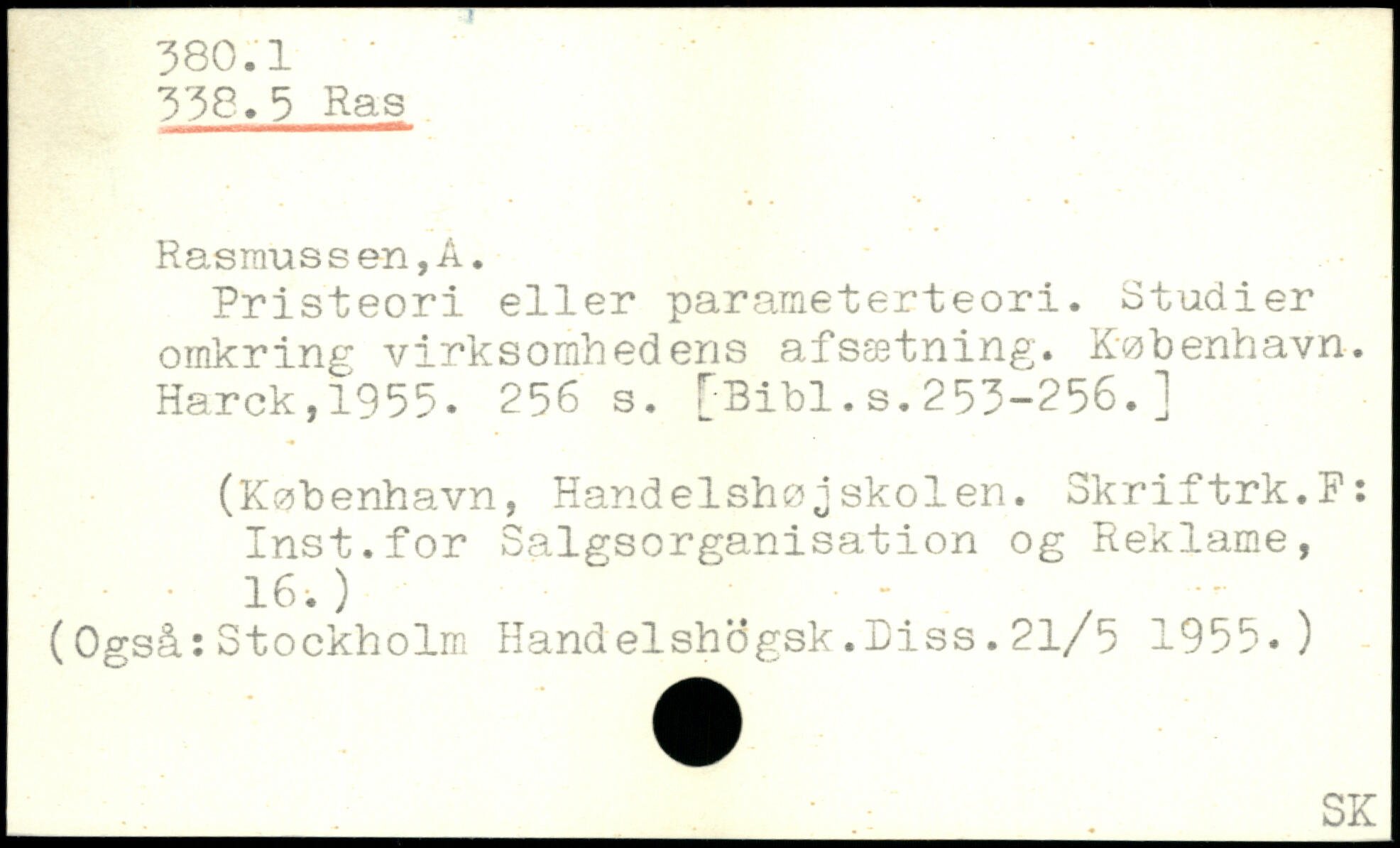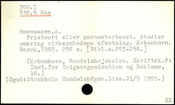 Pristeori eller parameterteori. Studier omkring virksomhedens afsætning. København. Harck,1955
