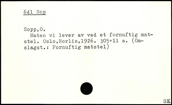 Maten vi lever av ved et fornuftig mat-stel. OslojWorlis,1926.