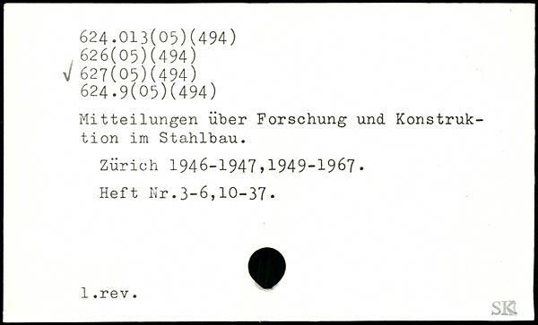 Mitteilungen über Forschung und Konstruktion im Stahlbau. Zürich 1946-1947,1949-1967. Heft Nr.3-6,10-37.