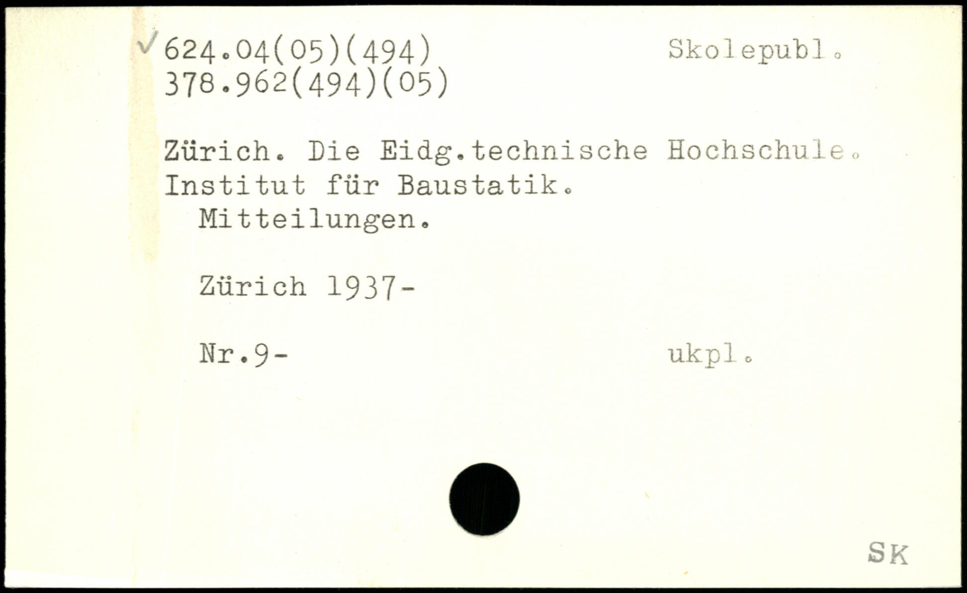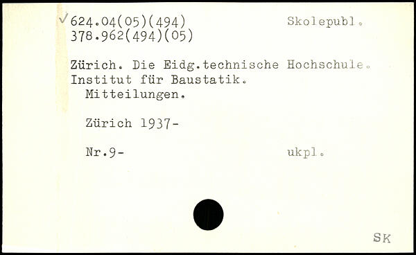 Zürich, Die Eidg.technische Hochschule., Institut für Baustatik. Mitteilungen. Zürich 1937- Nr.9- ukplo