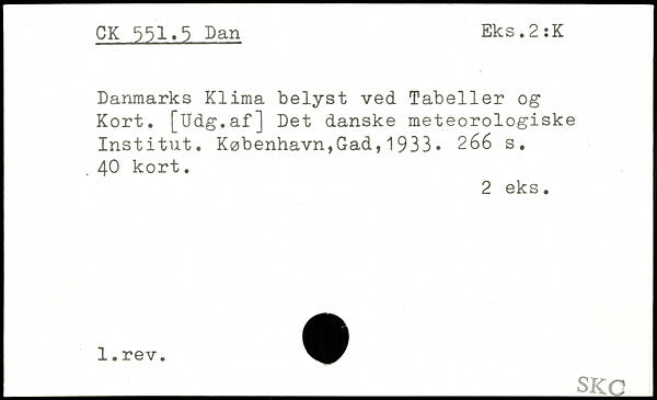 Danmarks Klima belyst ved Tabeller og Kort. [Udg.af] Det danske meteorologiske Institut.