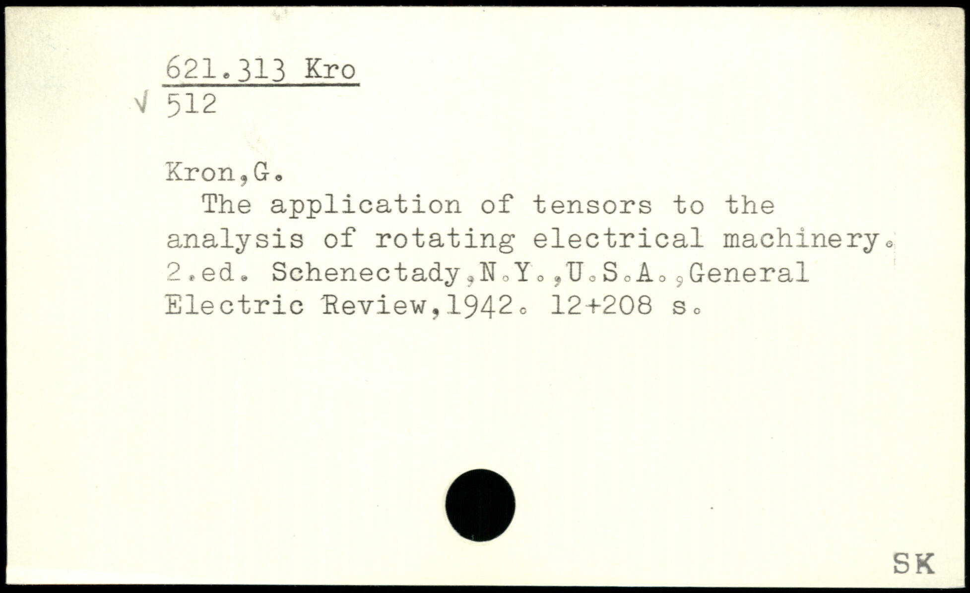 The application of tensors to the analysis of rotating electrical machinery^ 2,ed. Schenectady?NoYo,U0S0A0 ^General Electric Review,1942=