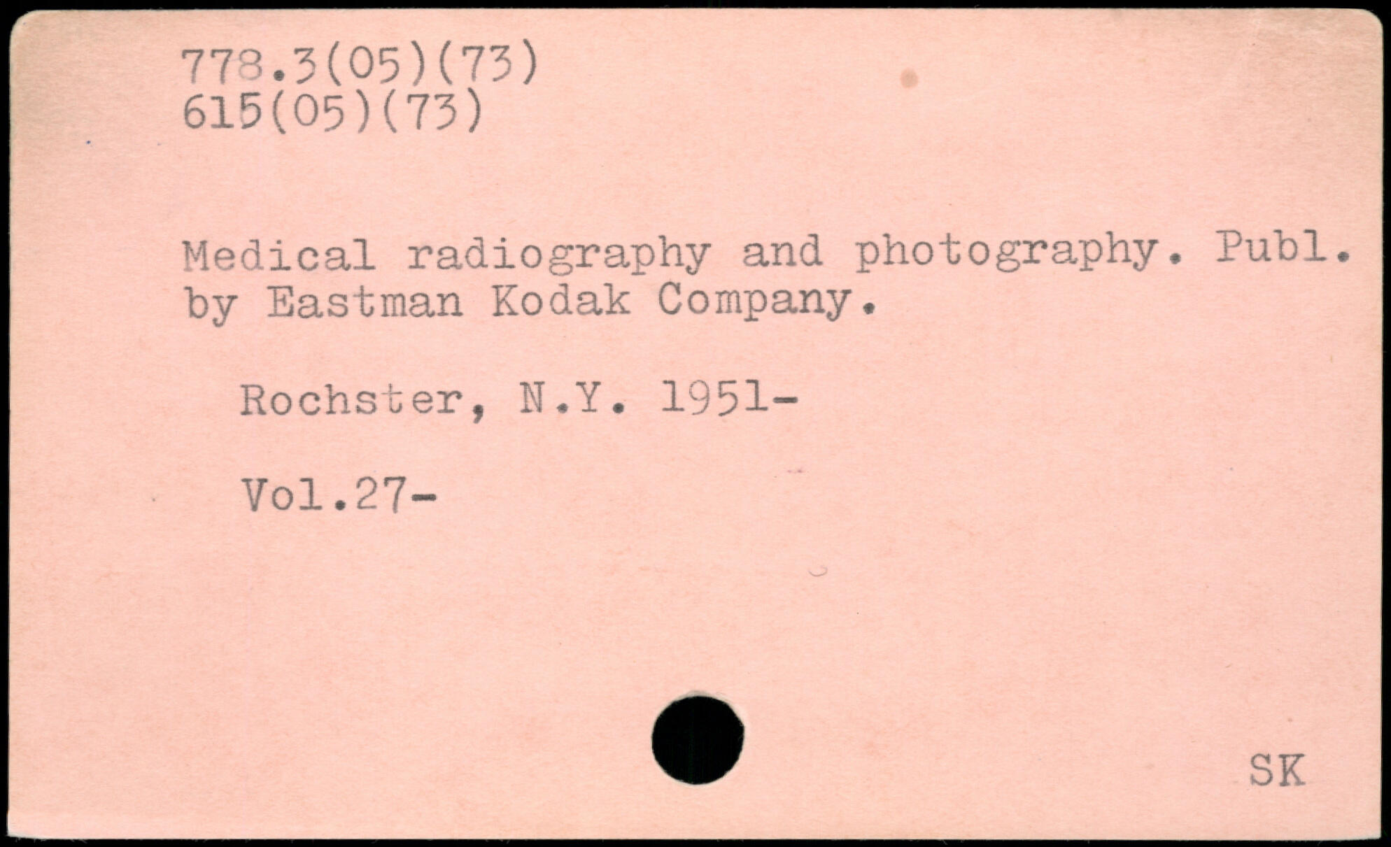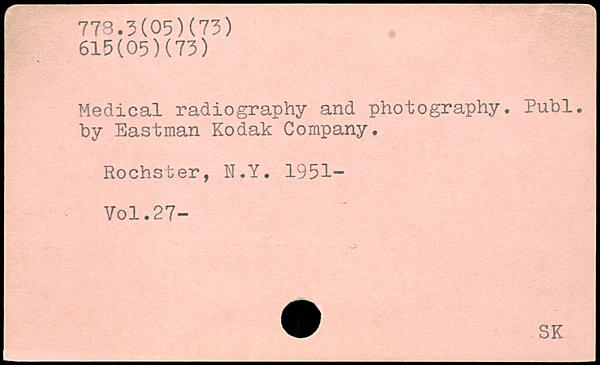 Medical radiography and photography. Puhl. by Eastman Kodak Company. Rochster, N.Y. 1951- Yol.27-