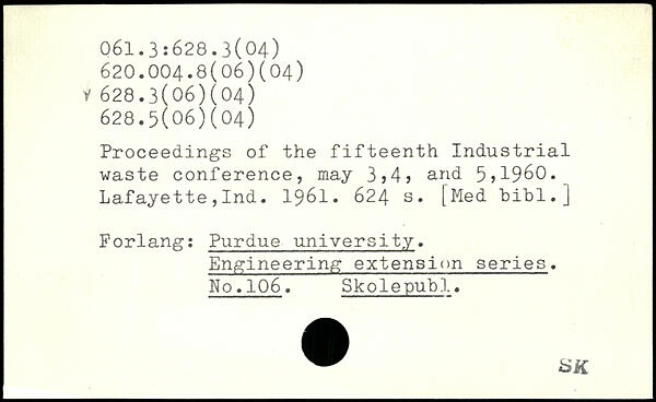 Proceedings of the fifteenth Industrial waste conference, may 3>4? and 5)1960. Lafayette,Ind. 1961.
