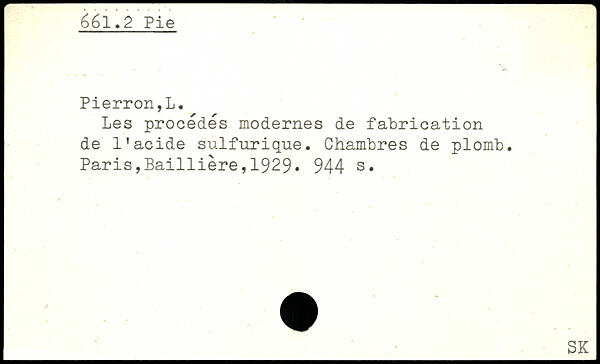 Les procédés modernes de fabrication de l'acide sulfurique. Chambres de plomb. Paris,Ba1111ère,1929.