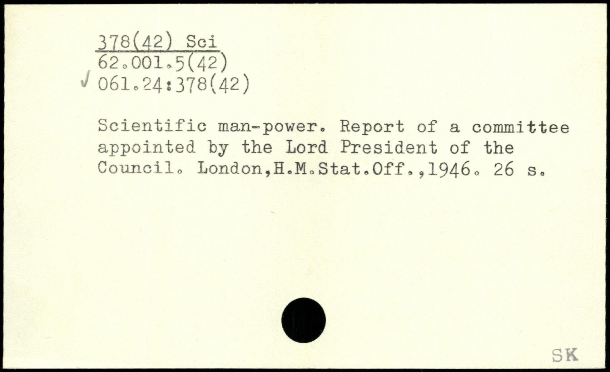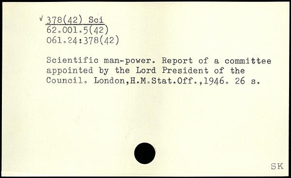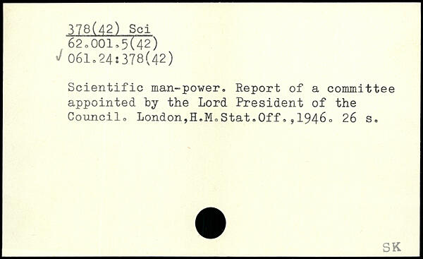 Scientific man-power. Report of a committee appointed by the Lord President of the Council, London,H.MeStat,Off,,194bo