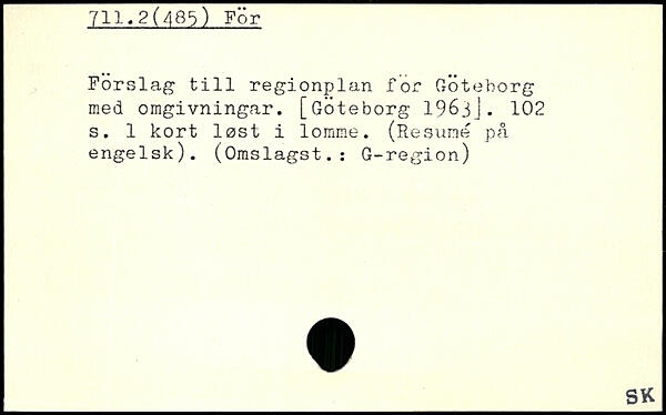 Forslag till regionplan for Goteborg med omgivningar. [Goteborg 1963j.