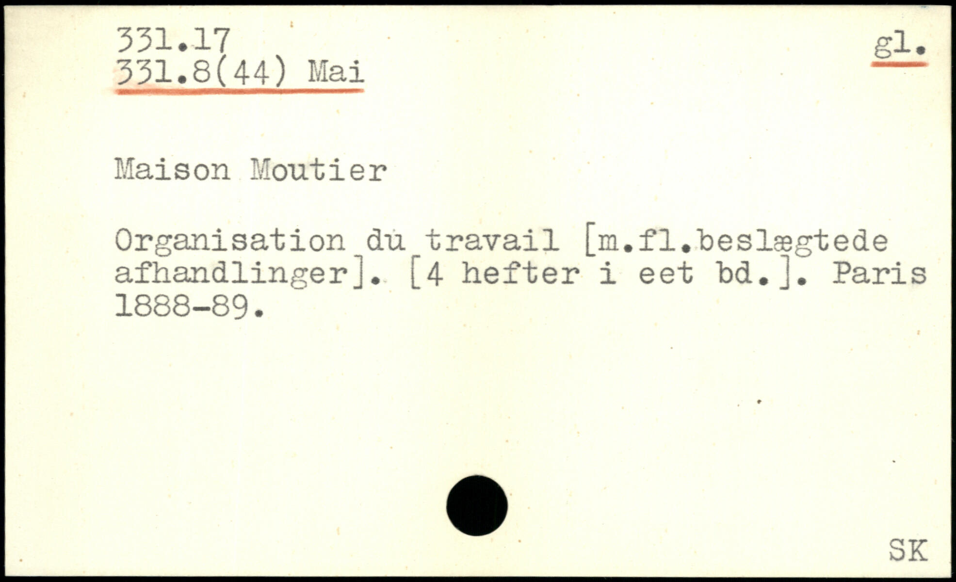 Maison Montier Organisation du travail [m.fl.beslægtede afhandlinger]. [4 hefter i eet bd.J.