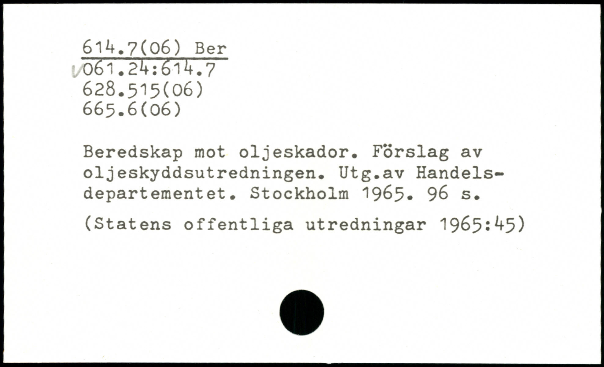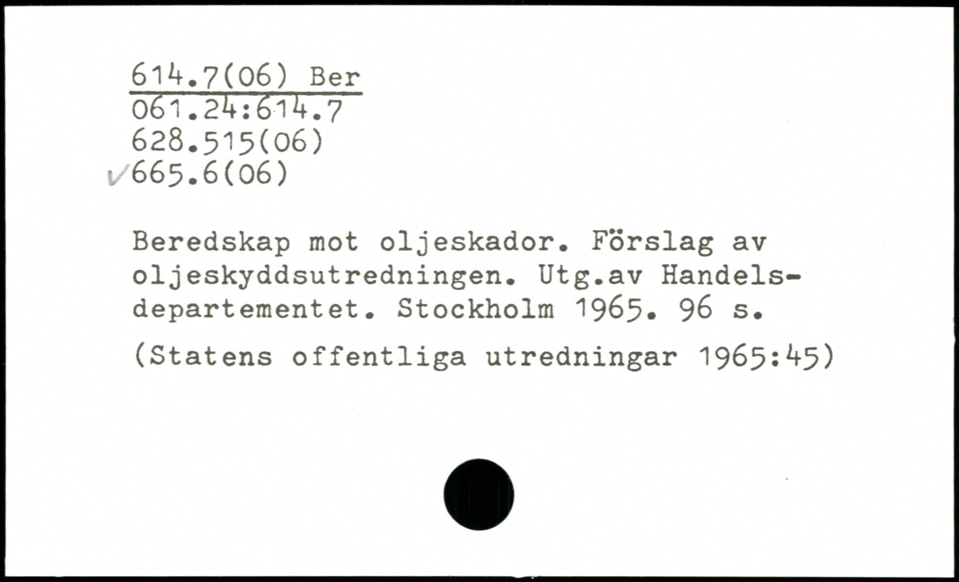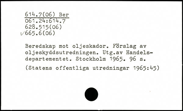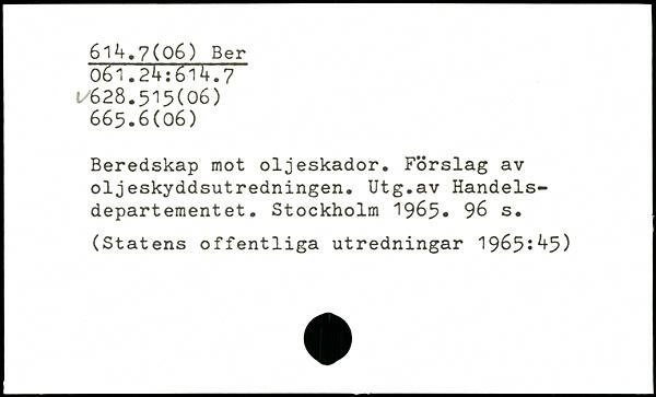 Beredskap mot oljeskador. Förslag av oljeskyddsutredningen. Utg.av Handelsdepartementet.