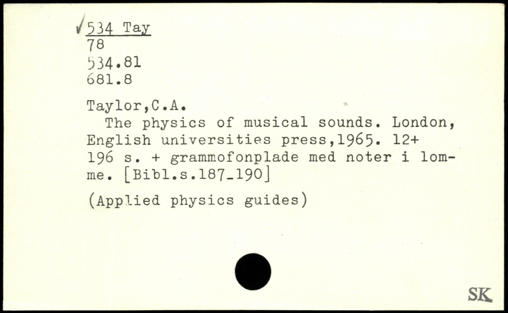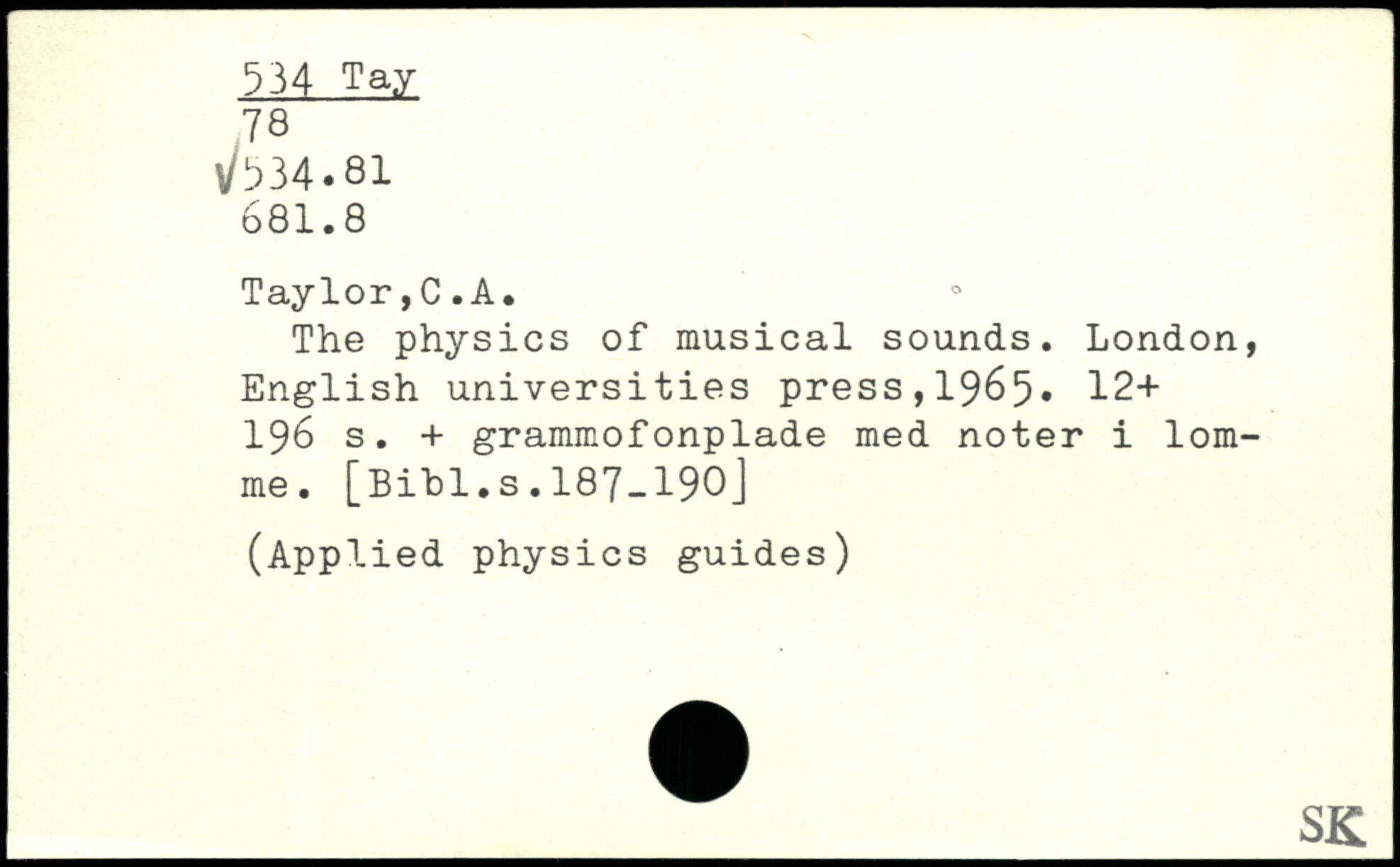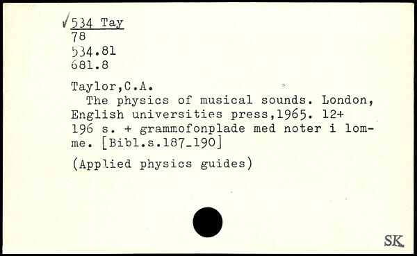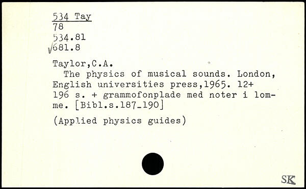 UDK: 534 Tay, 78, 534.81, 681.8