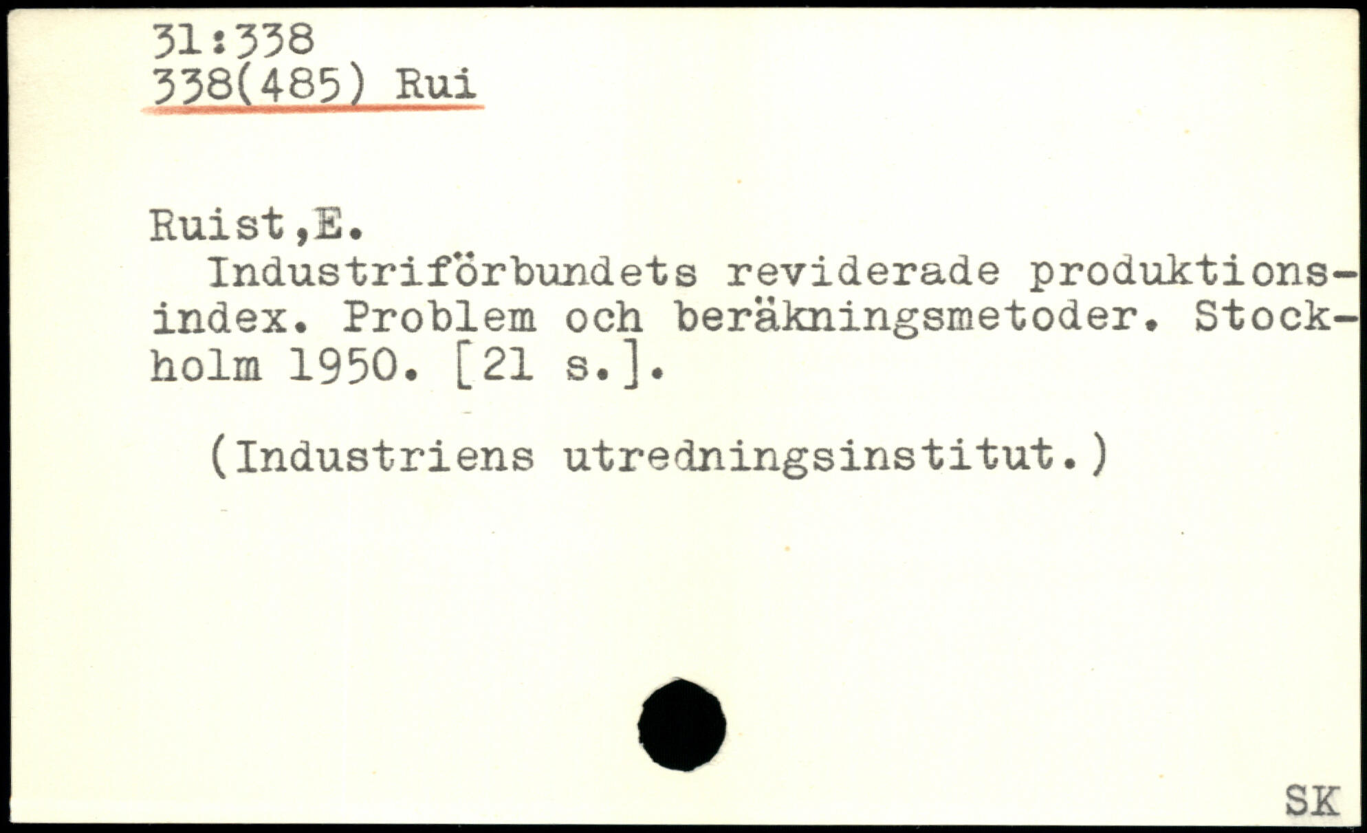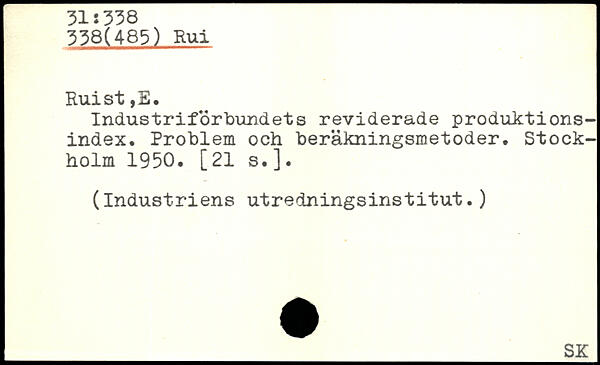 Industriförbundets reviderade produktions-index. Problem och beräkningsmetoder. Stock-holm 1950. [