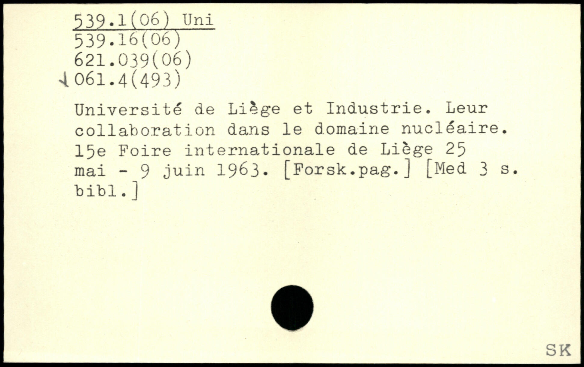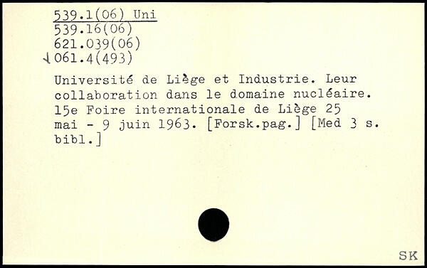 Université de Liège et Industrie. Leur collaboration dans le domaine nucléaire. 15e Foire internationale de Liège 25 mai - 9 juin 1963. [Forsk.pag.]
