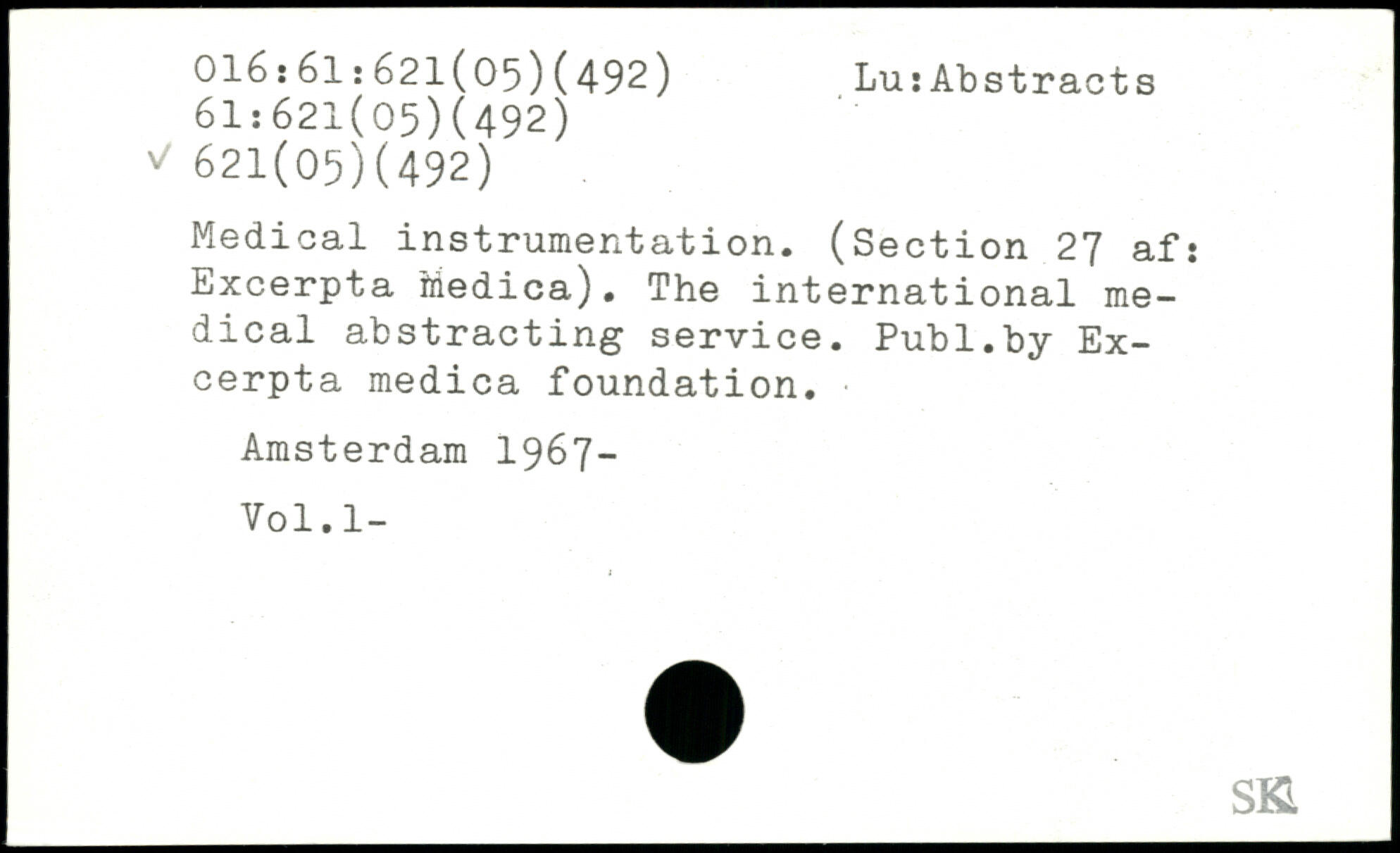 Medical instrumentation. (Section 27 af: Excerpta Medica). The international medical abstracting service.
