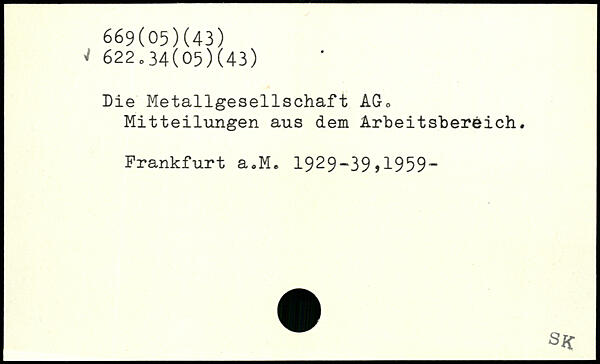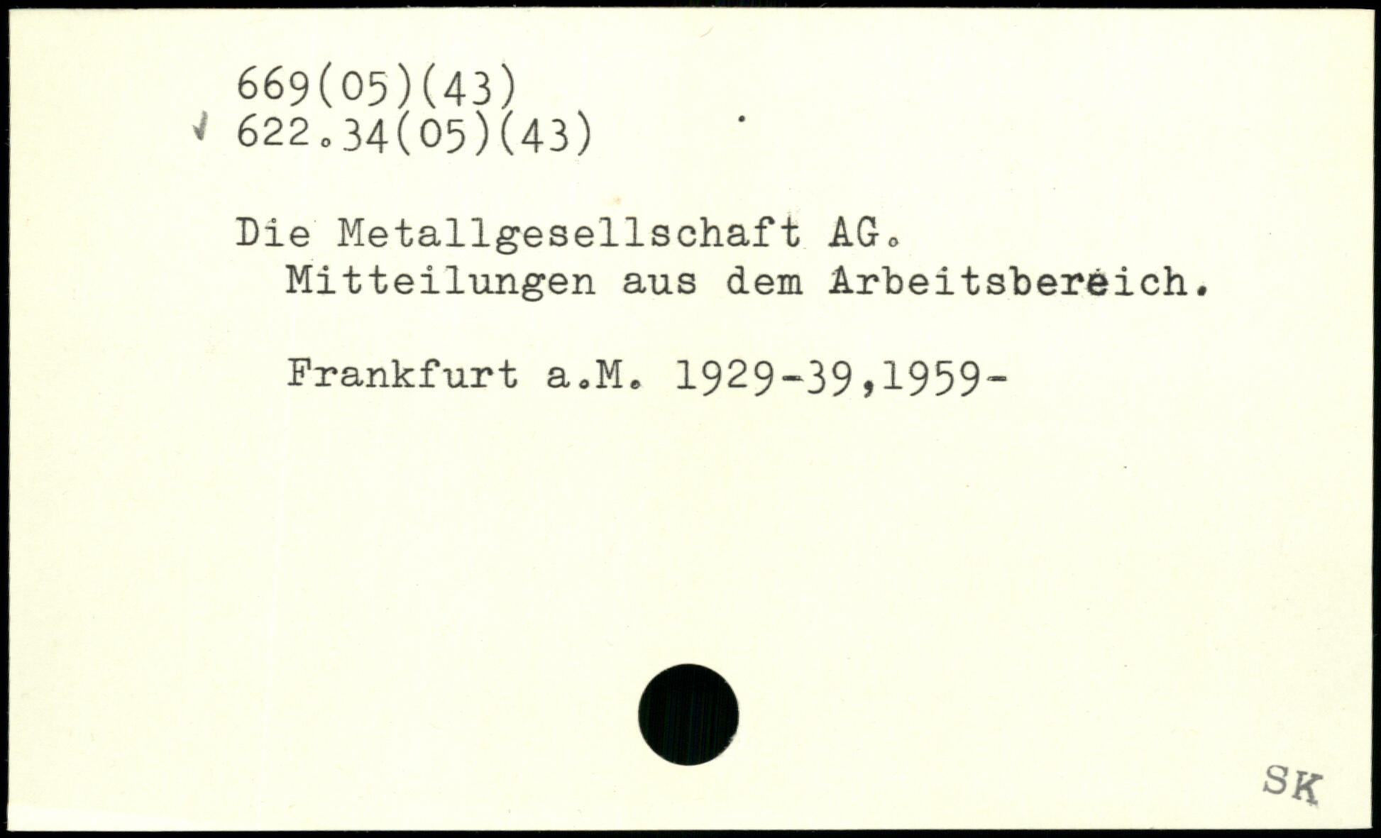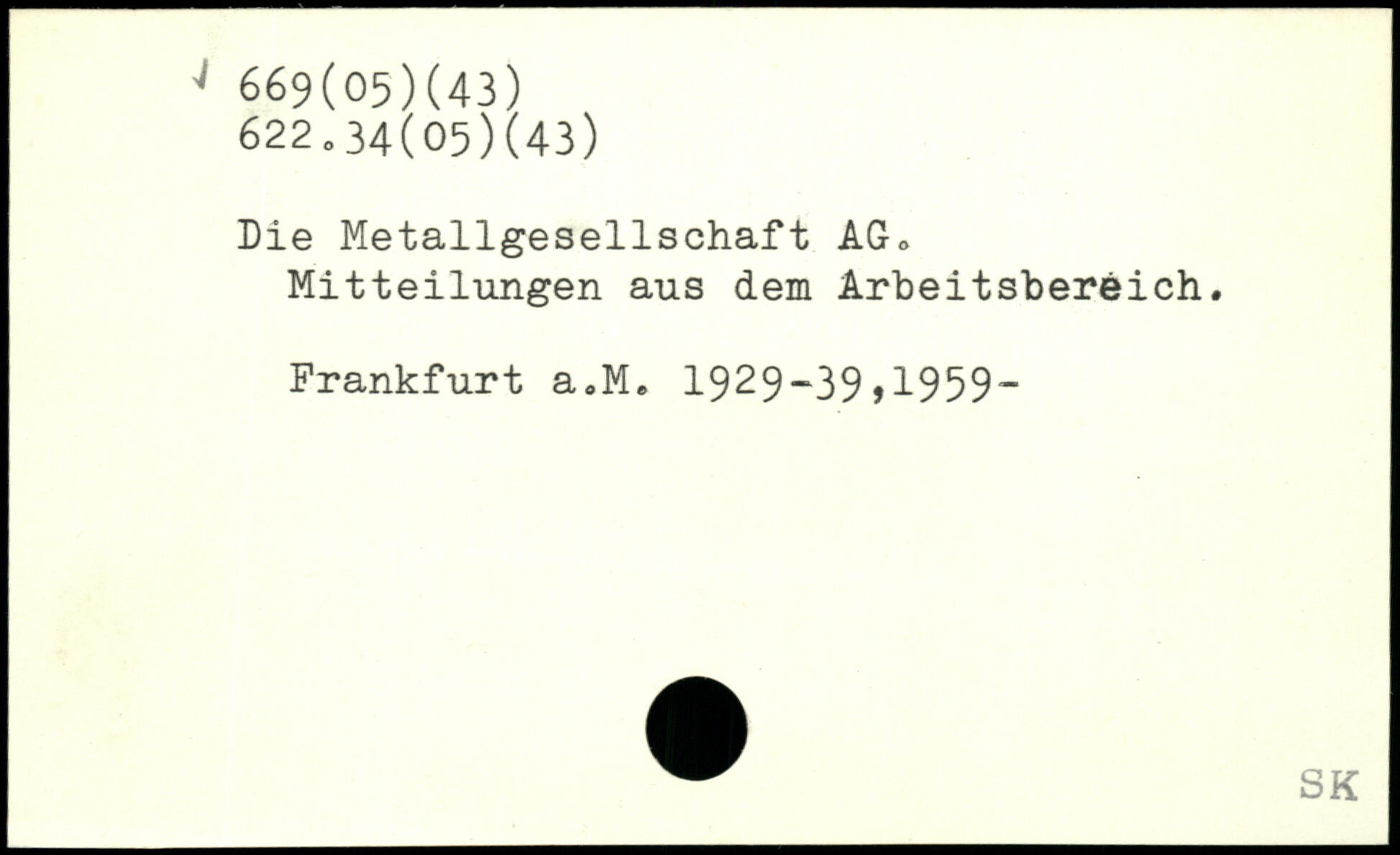 Die Metallgesellschaft AG, Mitteilungen aus dem Arbeitsbereich. Frankfurt a.M. 1929-39,1959-