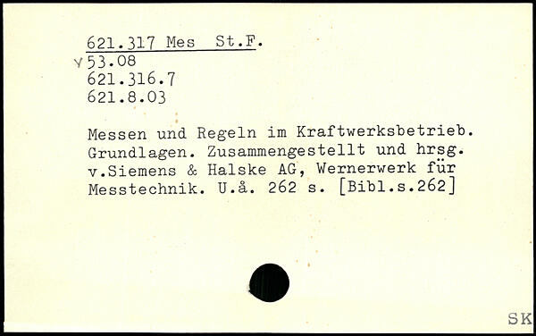 Messen und Regeln im Kraftwerksbetrieb. Grundlagen. Zusammengestellt und hrsg. v.Siemens & Halske AG, Wernerwerk für Messtechnik. U.ä.