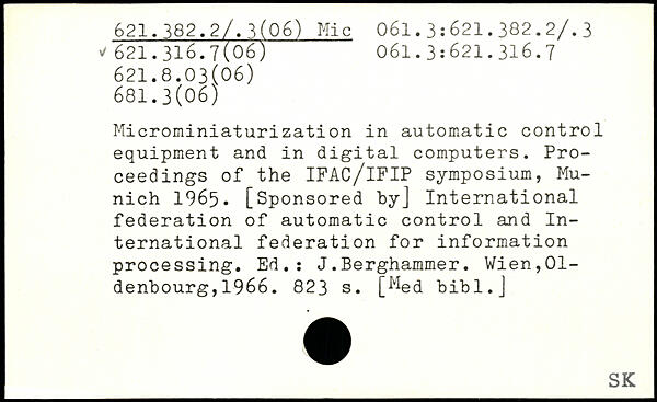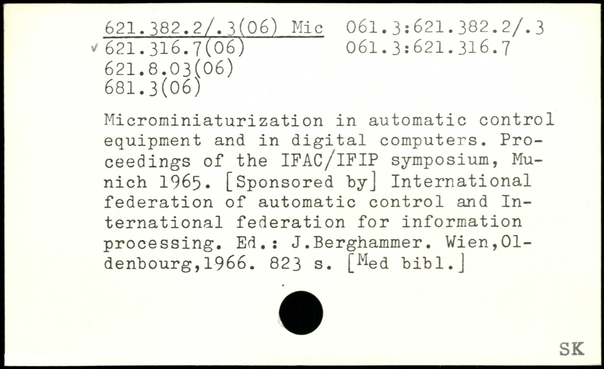 Microminiaturization in automatic control equipment and in digital computers. Proceedings of the IFAC/lFIP symposium, Munich 1965.