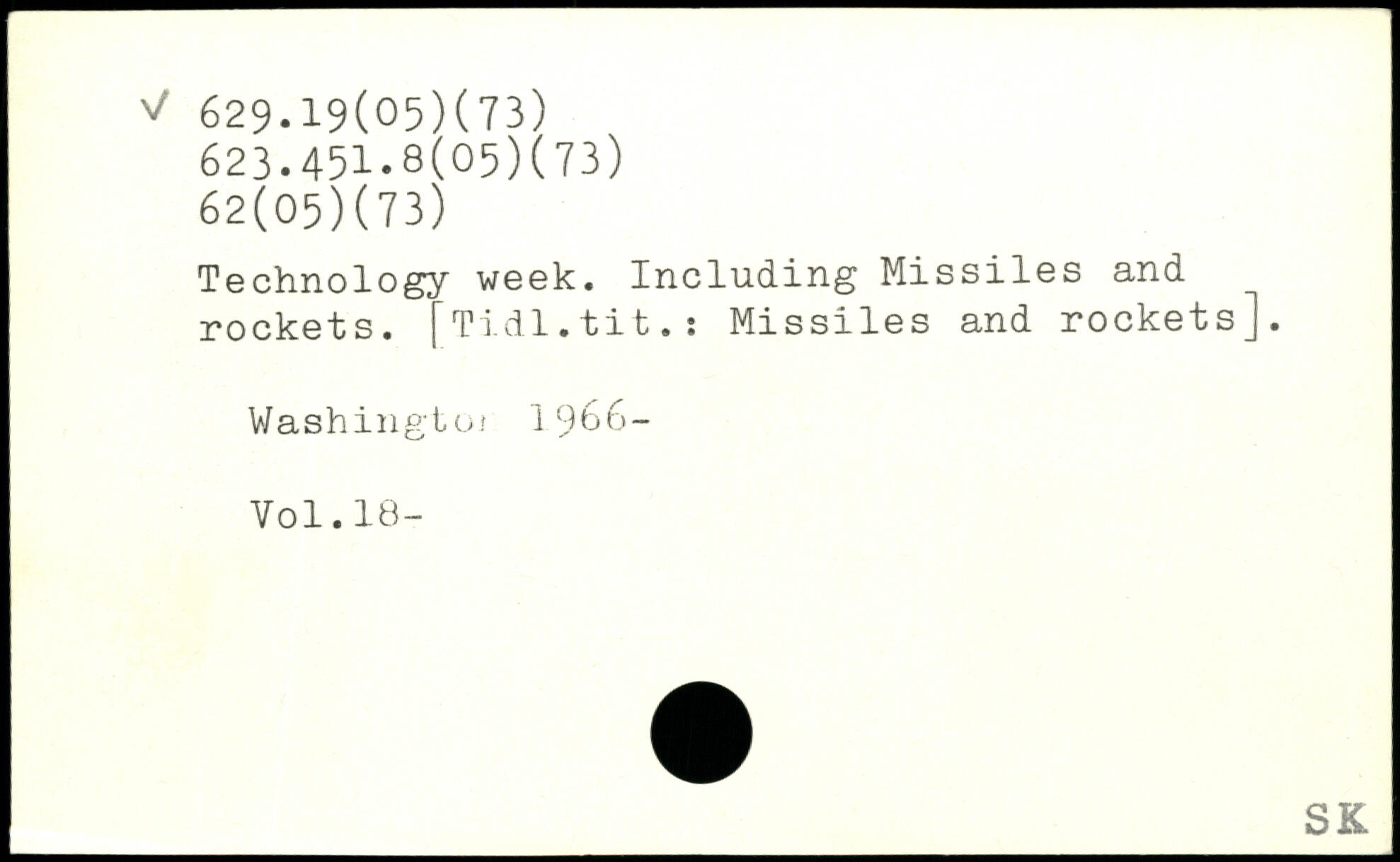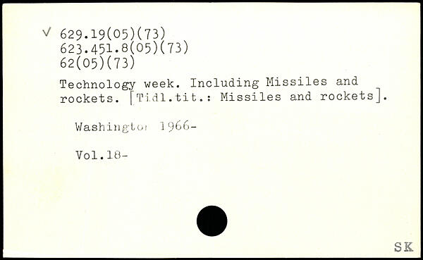 Technology week. Including Missiles and rockets. [Tidl.tit.: Missiles and rockets]. Washingtoi 1()66- Yol.18-