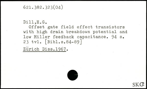 Offset gate field effect transistors with high drain breakdown potential and low Miller feedback capacitance.