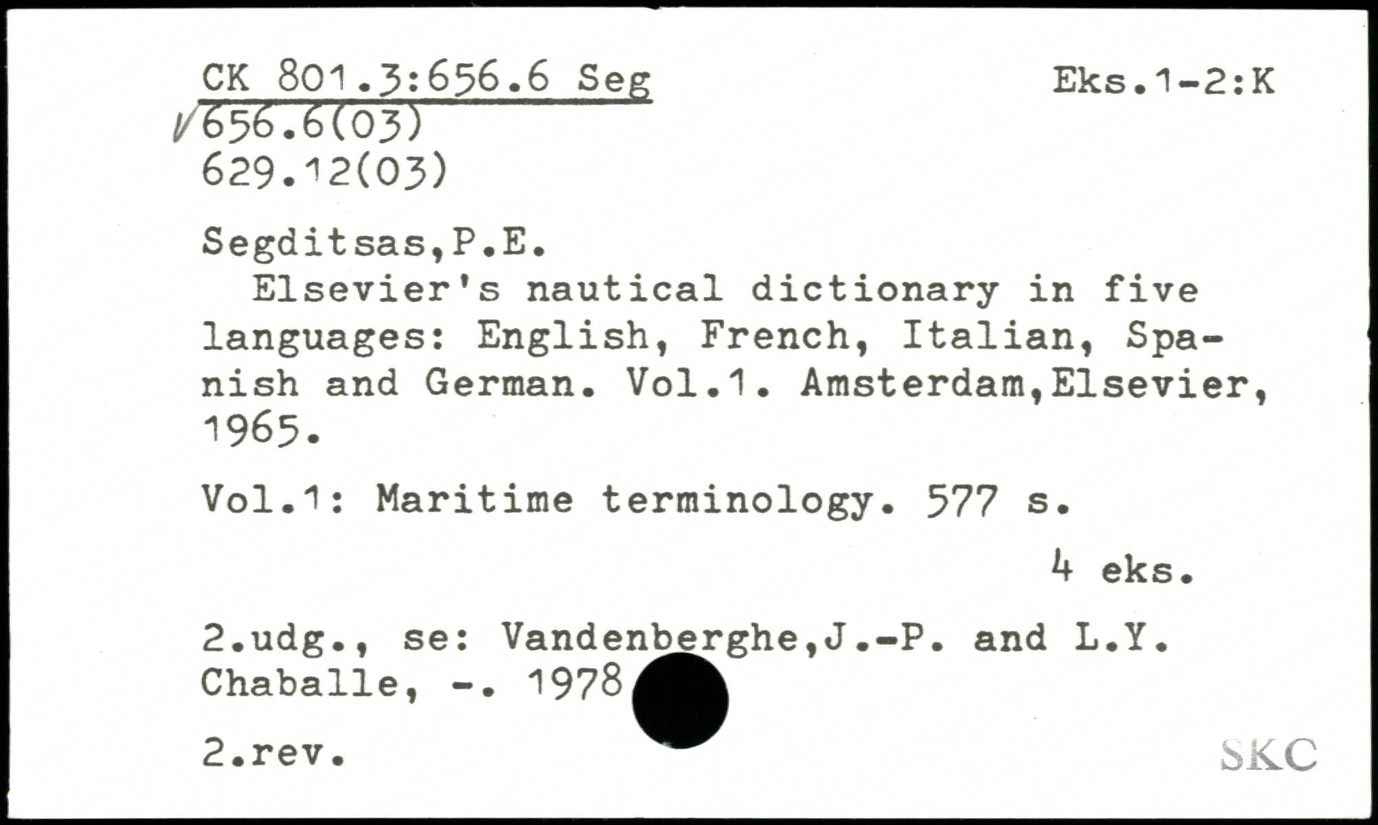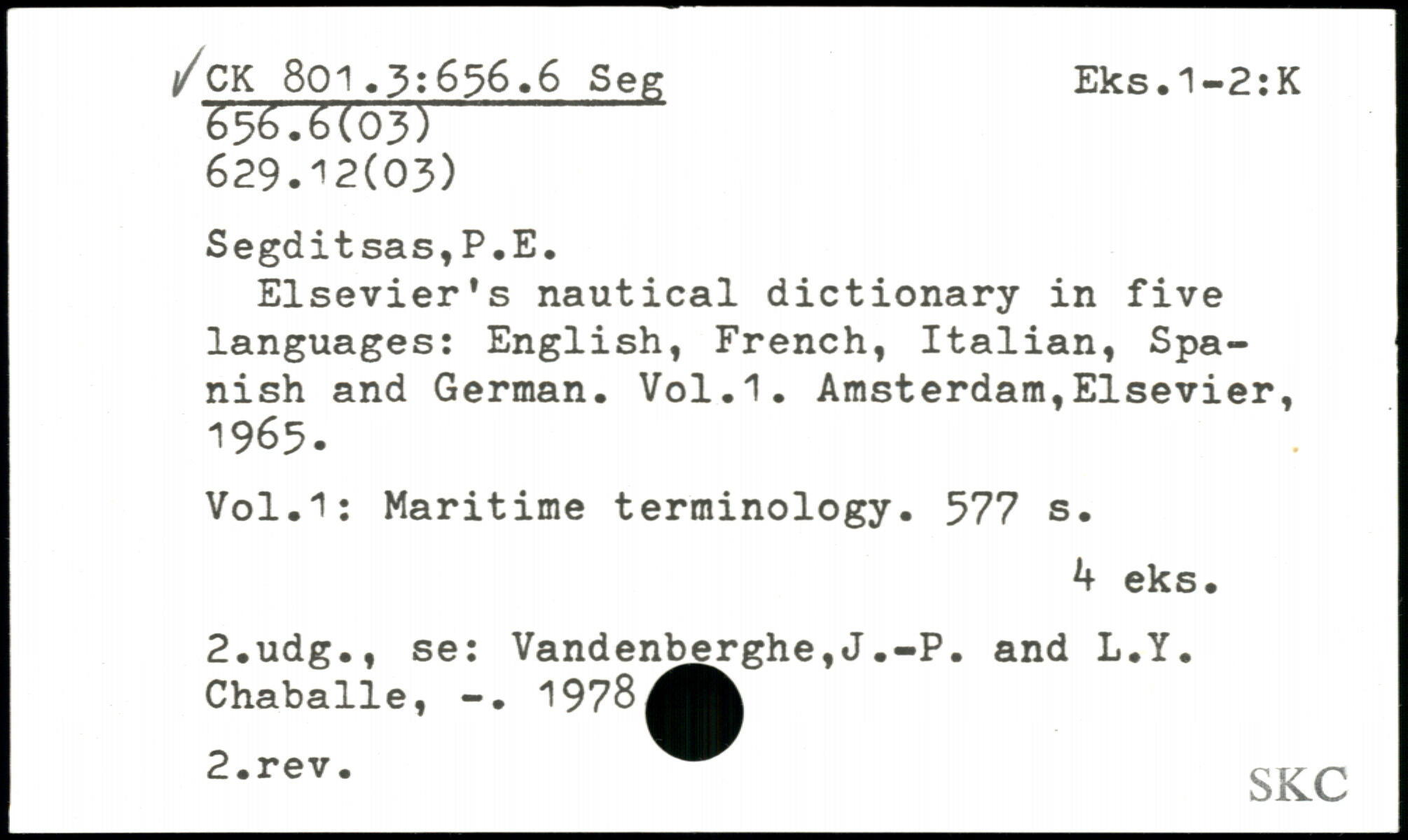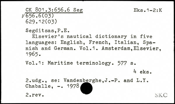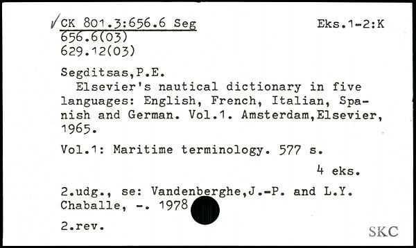 Elsevier’s nautical dictionary in five languages: English, French, Italian, Spanish and German.
