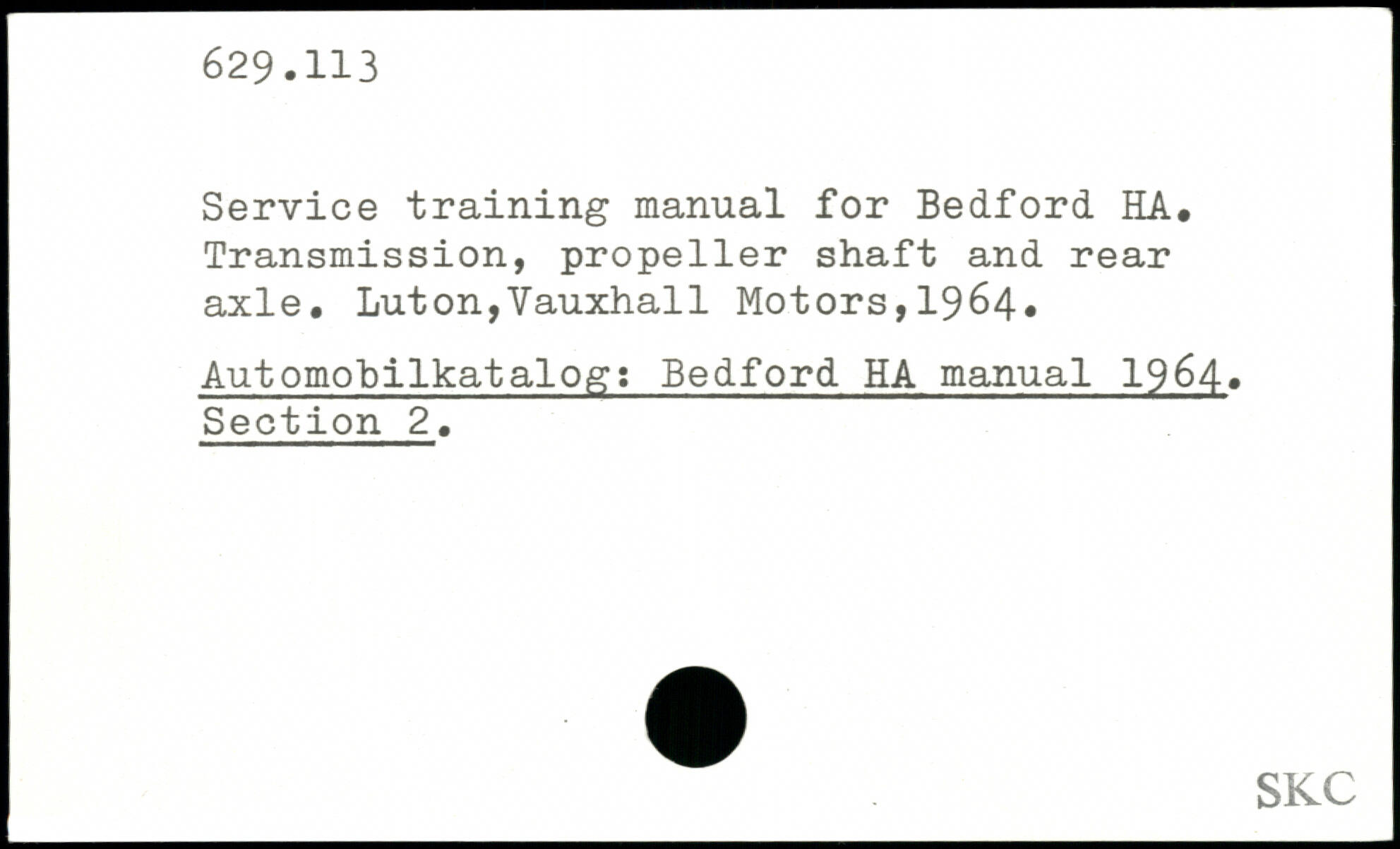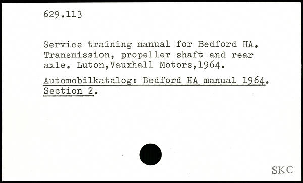 Service training manual for Bedford HA, Transmission, propeller shaft and rear axle