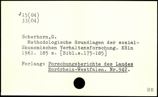 Methodologische Grundlagen der sozial-okonomischen Yerhaltensforschung.