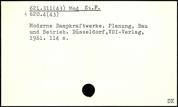 Moderne Dampkraftwerke. Planung, Bau und Betrieb. Düsseldorf,VDI-Verlag, 19.61.