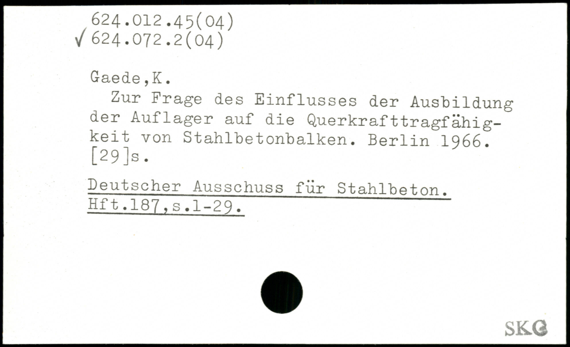 Zur Frage des Einflusses der Ausbildung der Auflager auf die Querkrafttragfähig-keit von Stahlbetonbalken.
