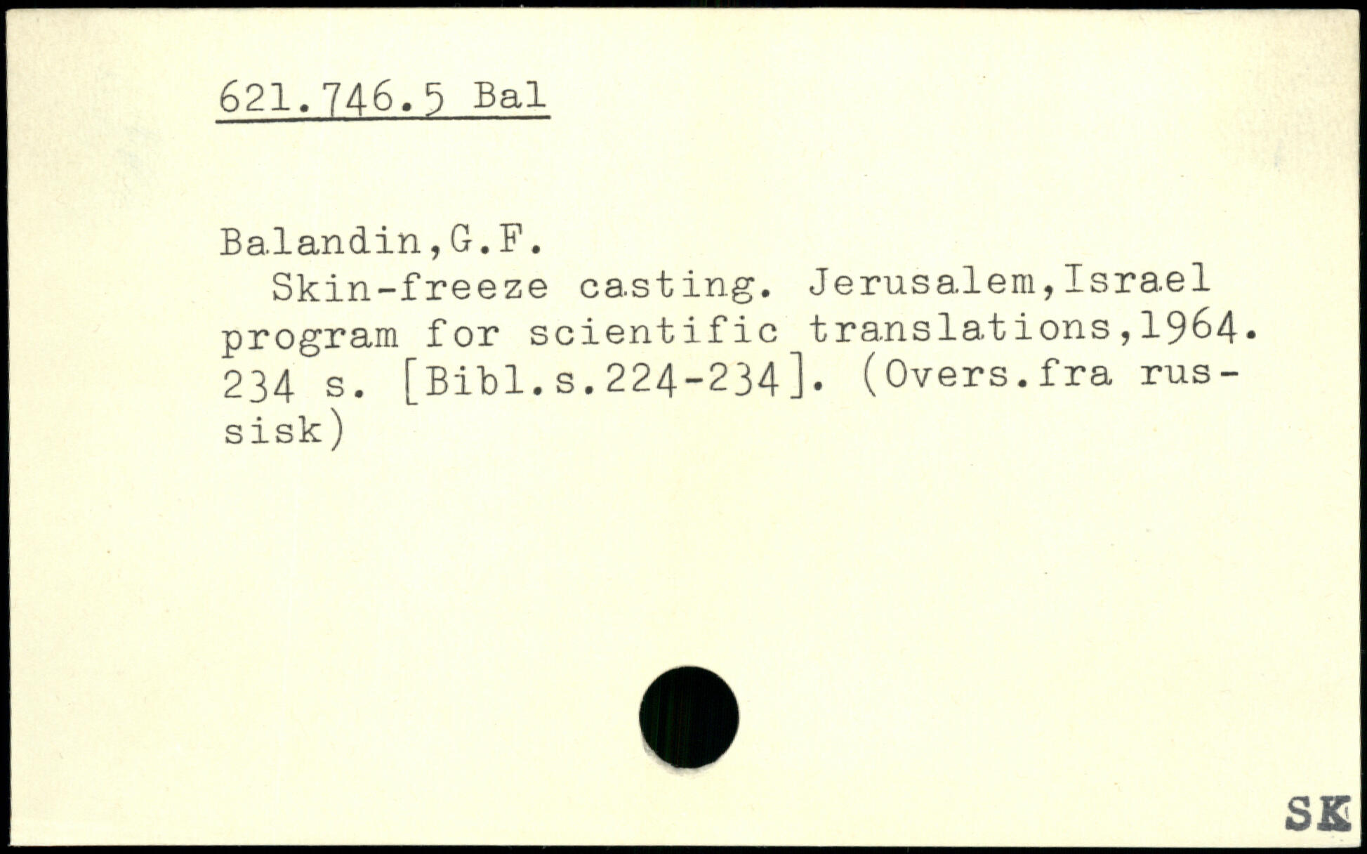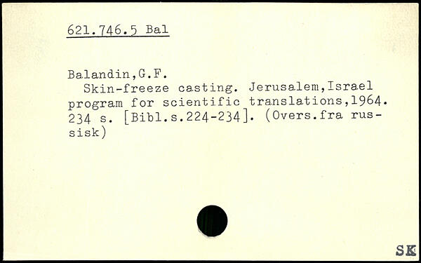 Skin-freeze casting. Jerusalem,Israel program for scientific translations,1964.