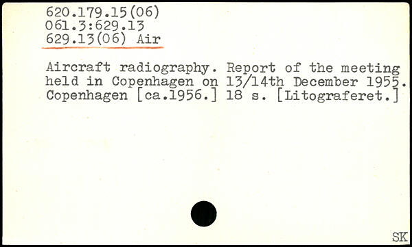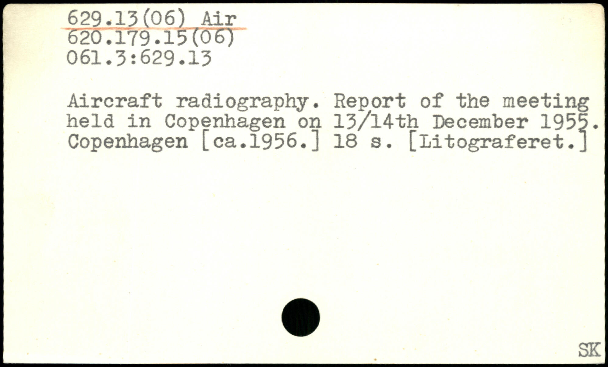 Aircraft radiography. Report of the meeting held in Copenhagen on 13/14th December 1955. Copenhagen [ca.1956.]