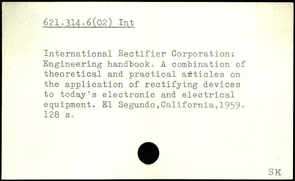 International Rectifier Corporations Engineering handbook, A combination of theoretical and practical articles on the application of rectifying devices to today’s electronic and electrical equipment